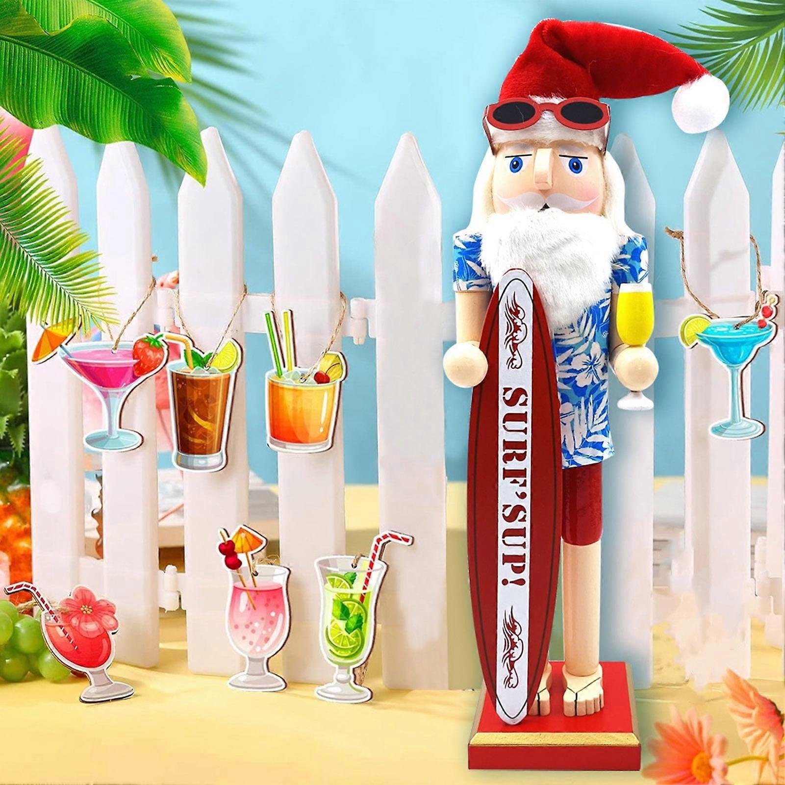 SUSUchens Beach Santa Nutcracker Figurine, Hawaiian Themed Wooden Christmas Decor, Style A