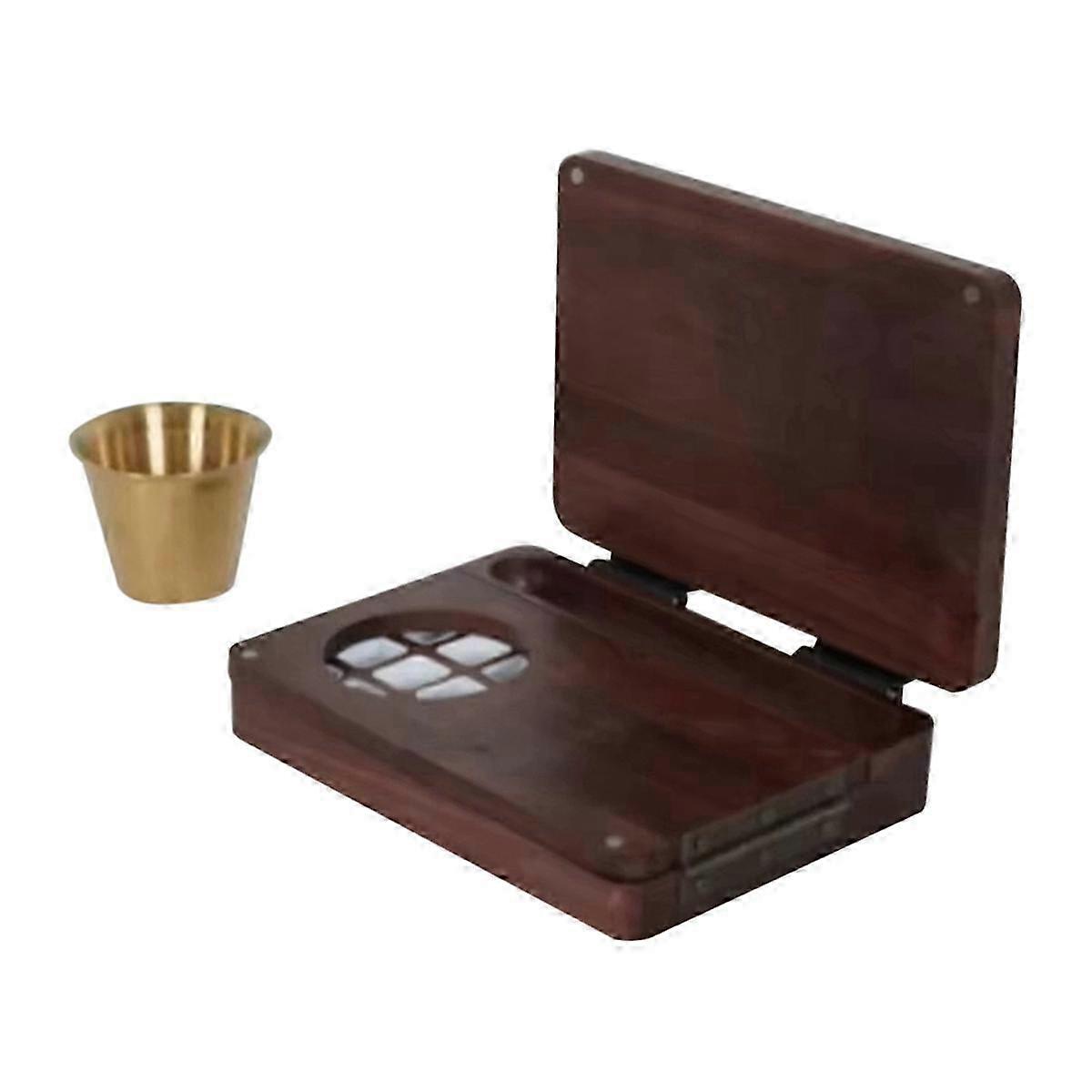 25-26 24 Grid Wooden Watercolor Palette Walnut Wood Travel Watercolor Palette Foldable Empty Palette Box Paint Tray