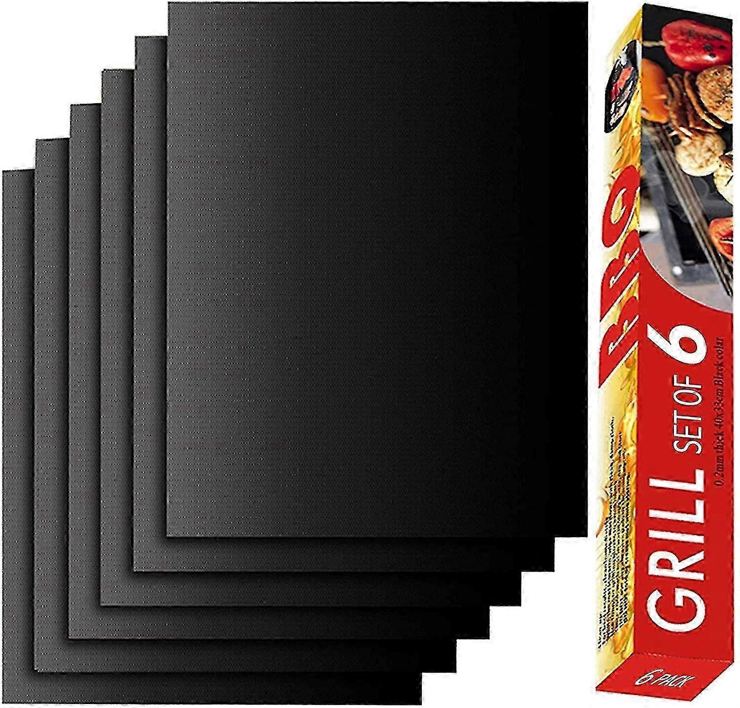 1.NO BETTER CHOICE - Thicker does not mean better. Our grill mat is thin enough to leave grill marks and flavor intact,and thick enough to provide ultimate heat resistance and durability.6 pack of grill mats can meet the needs of the dinner from time to time; when they are spare, you can cut them to any size or shape to fit any need. Also doubles as a bake mat2. NON-STICK - Non-Stick means you can grill without grease and mats are reusable for years Non-stick BBQ grill mat prevent even the smallest morsels from falling through the grates. Keep your grill looking brand-new and no more clean-up of your dirty grill3.APPROVED MATERIALS - Our BBQ grill mats are made from PFOA-Free materials and premium PTFE-Fiberglass coating, no PFOA, silicone or other dangerous chemicals When the use time exceeds 30 minutes, the maximum temperature cannot exceed 260 F; when used for a short time, the maximum temperature cannot exceed 400 F.4.REUSABLE AND DISHWASHER SAFE - Versatile and highly economical, they can be cut to perfectly fit your pans. Both sides can be used over 100 times, for grilling, roasting, and even baking They are super-easy to clean; just pop them in the top shelf of your dishwasher and forget about laborious scrubbing.5.QUALITY GREAT- Unhappy with your new grill mats? No problem If you have any question about it, just tell us and we will provide you a satisfied solution. Note: Due to the light and screen setting difference, the item's color may be slightly different from the pictures. Please allow slight dimension difference due to different manual measurement.