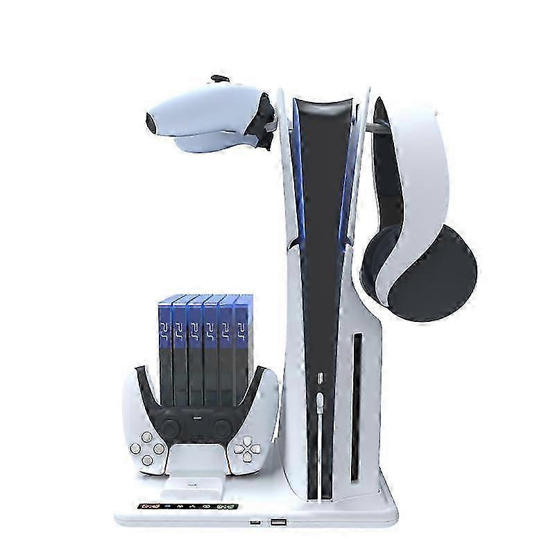 25-26 Charging Station with Fan for PS5 Slim Console, Multifunctional Cooling Dock with Disc Organizer for Playstation 5 Slim Accessories