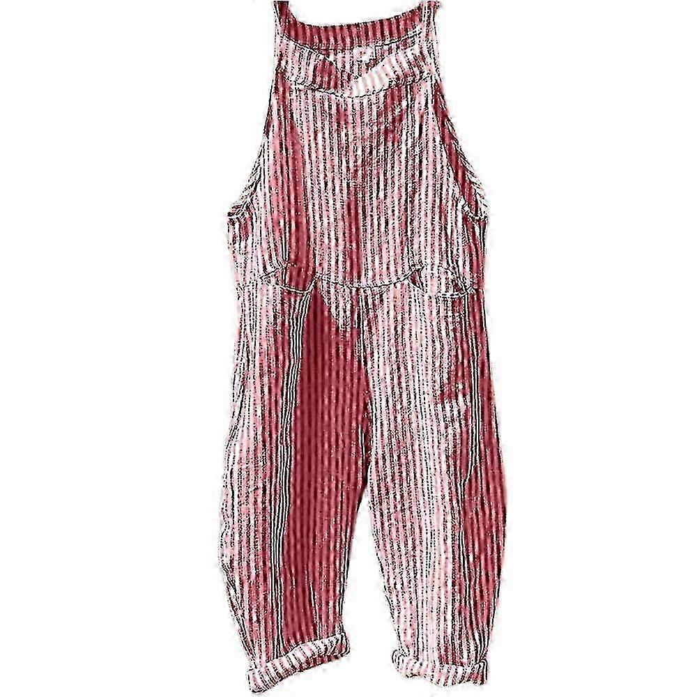 25-26 Womens Striped Dungarees Overalls Playsuit Pocket Trousers Jumpsuit
