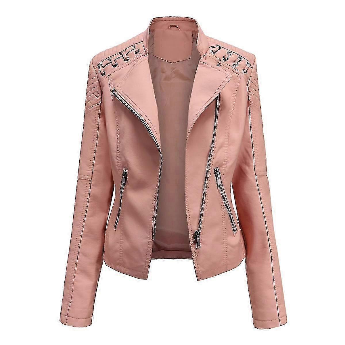 25-26 Womens Slim Fit Lapel Collar Motorcycle Cropped Leather Jacket