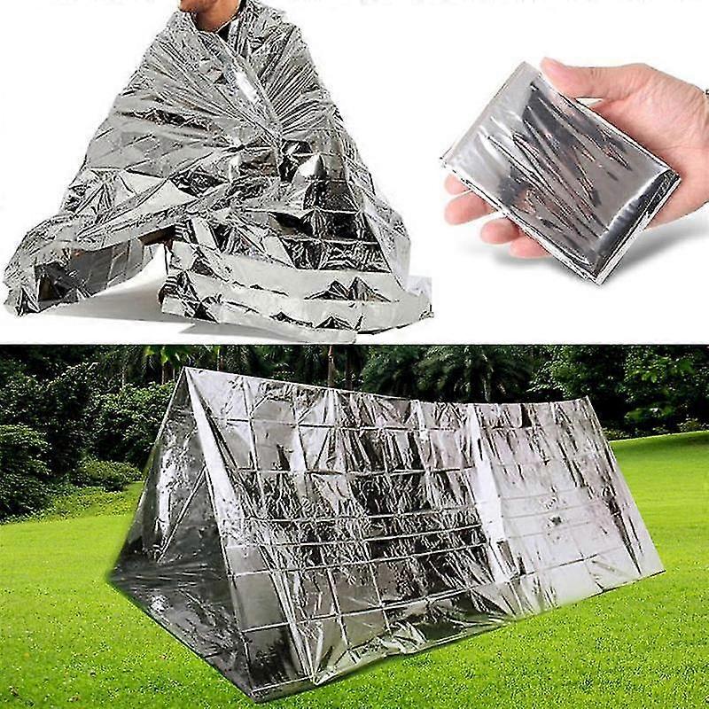 Description: and Features: It is a compact and lightweight shelter, can be easily stored in the cars glove compartment for easy transporation during camping trips. Blanket reflects wind and heat and is waterproof. Blanket can be used in winter for maintaining warmth and keeping temperatures in control You can use it to cover urself when there is rainy day Can cover you as a blanket or keep it in the floor as a mattress when you want to sleep It is an extremely versatile camping shelter that can also be used as a curtain on a sliding door When you are in trouble, you should not worry, this emergency mylar blankets can protect you before Rescuer come to help you Description: Size: 130*210CM Color: Sliver Function: This product usually made by foil or aluminum foil Toughness, light, soft, strong plasticity, can be used as a stretcher. (A person about 100kg who will lay down on the emergency blankets, then we need to use 6 people to hold the four corners and the middle of the blankets at the same time then the blanket will not break but it can only use in the short distance) When you got trouble in the field, pls kindly cover yourslef with this blanket, so the reflective effect can help rescuer yo find you as soon as possible You can use it to cover the floor as a mat when you repair the car Package Includes: 1x Emergency Blankets Note: Due to the light and screen setting difference, the item's color may be slightly different from the pictures. Please allow slight dimension difference due to different manual measurement.
