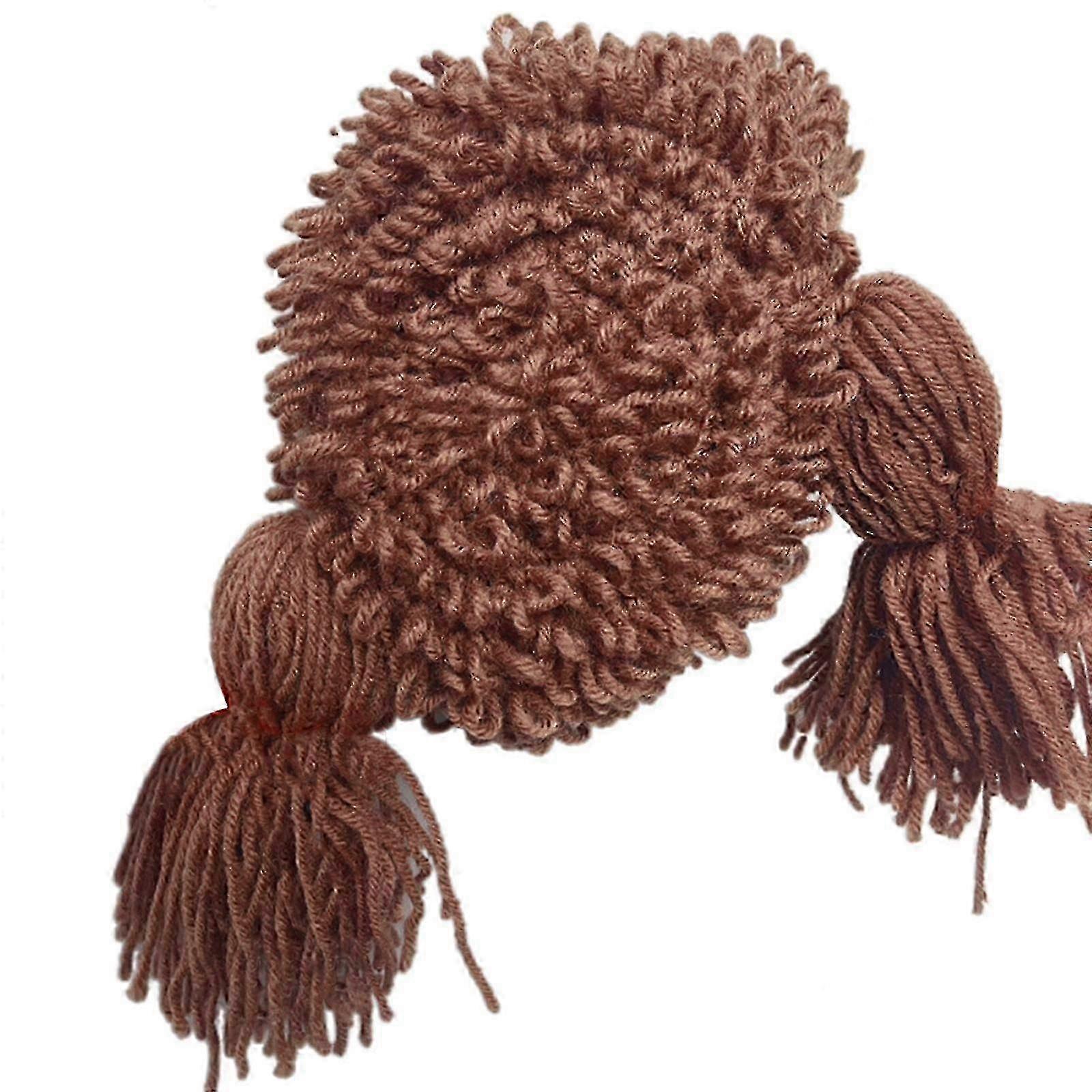 25-26 Kid Pigtail Wig Crochet Wig Cap Braid Wig Hat Princess Long Hair Pigtail Braid Wig Hat Cap Winter Knitted Wig Hat light yellow