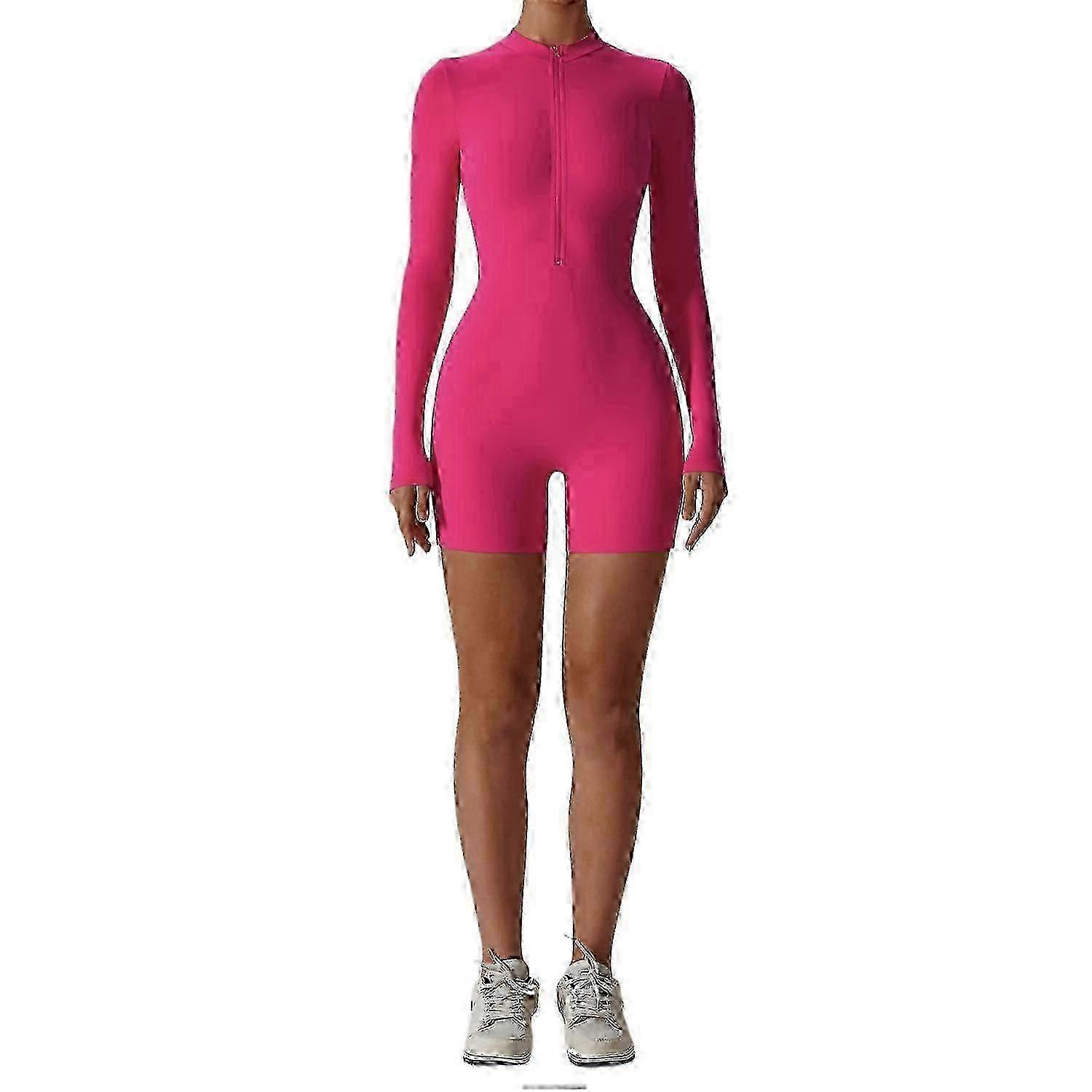 25-26 Zip Front Long Sleeve Jumpsuits for Women Yoga Jumpsuits Brushed Buttery Soft Workout Shorts