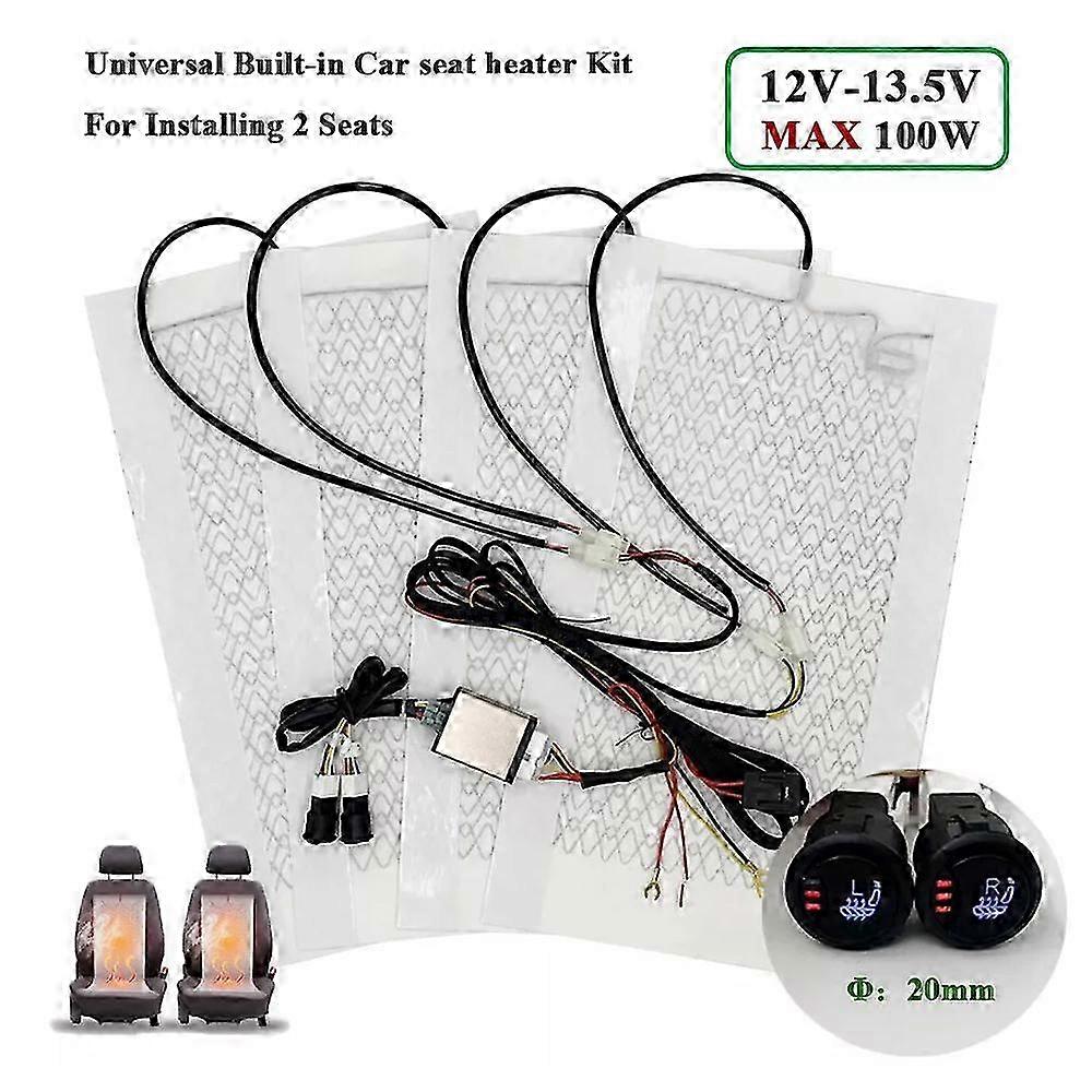 25-26 4Pcs 12V Universal Carbon Fiber Car Heated Pad 2-Seat Heater Kit 3-Level Switch js