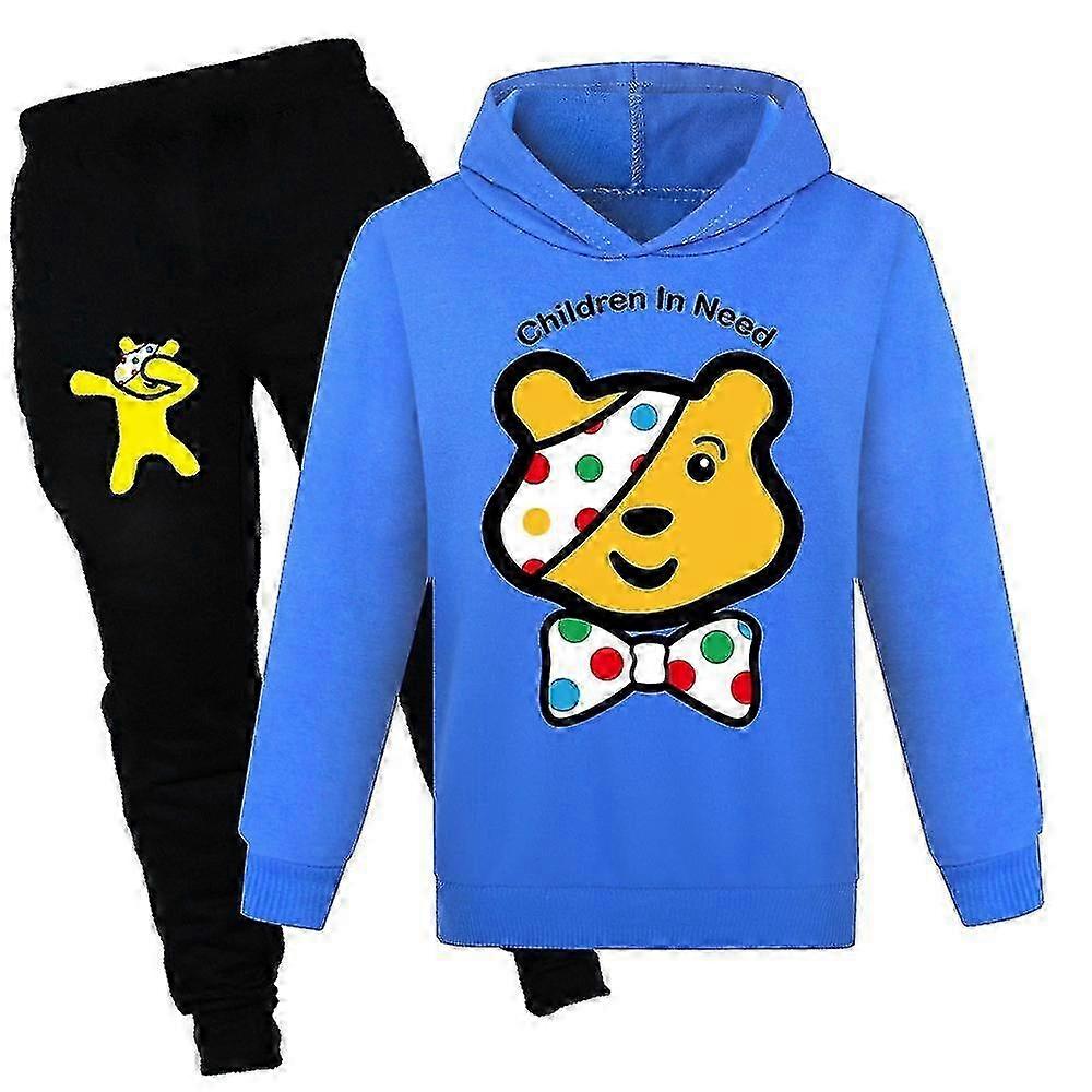 25-26 Kids Boys Girls Children In Need Tracksuit Pudsey Bear Dotted Hooded Sweatshirt Pullover Hoodies Jogging Pants Trouser Set Casual Sports Suit
