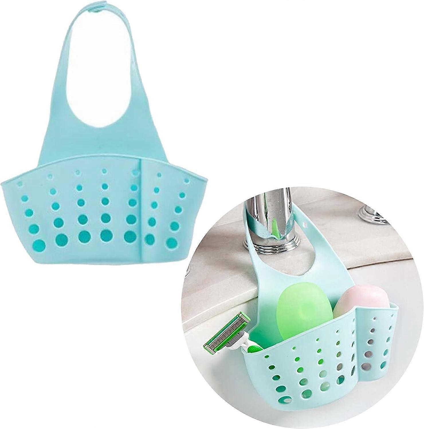 LINLIN Hanging Sink Organizer with Double Pockets, Sponge Drying Holder & Storage Pouch, Compatible with Kitchen Washroom Bathroom