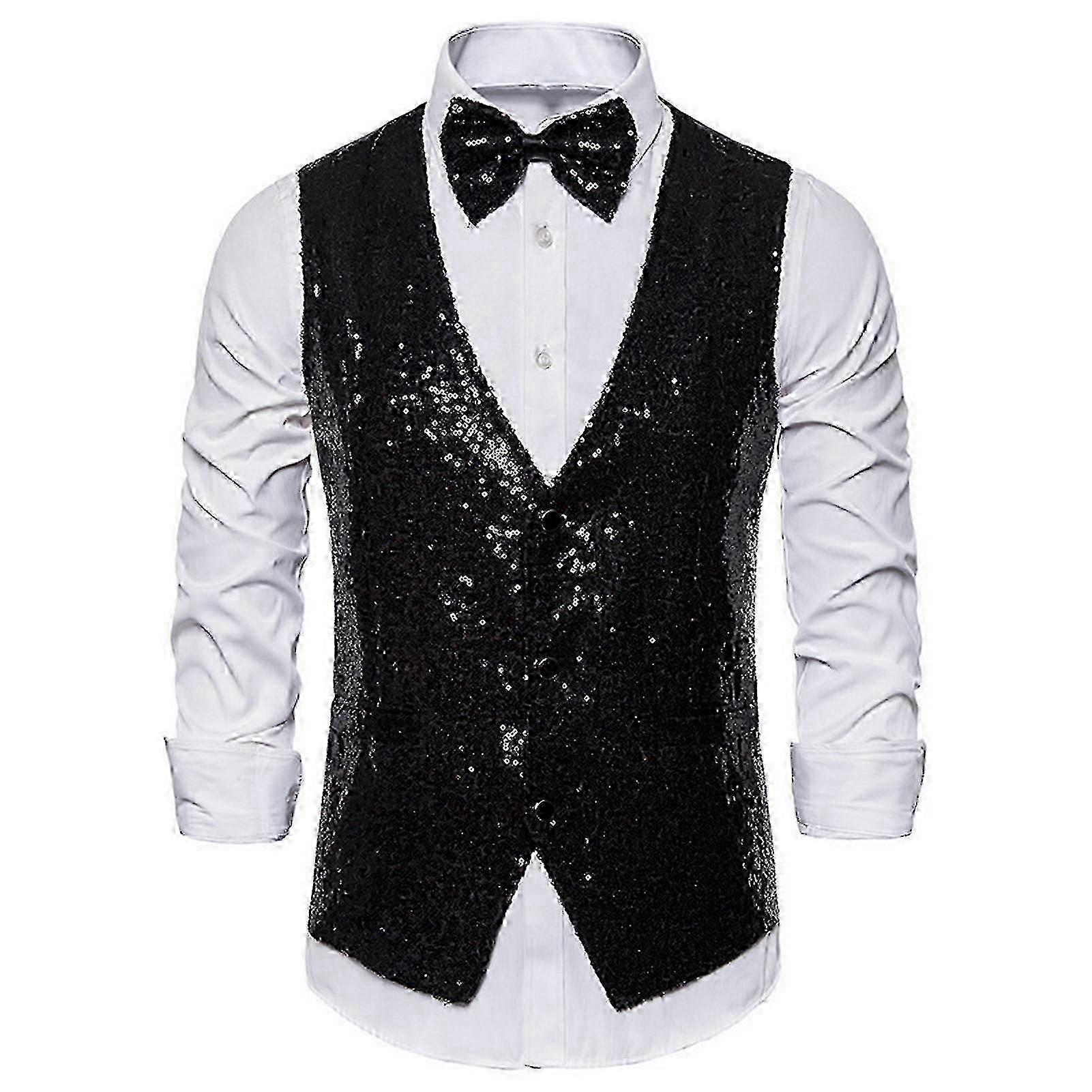 Men Vest Bow Set Slim Fit Sleeveless Single-breasted V Neck