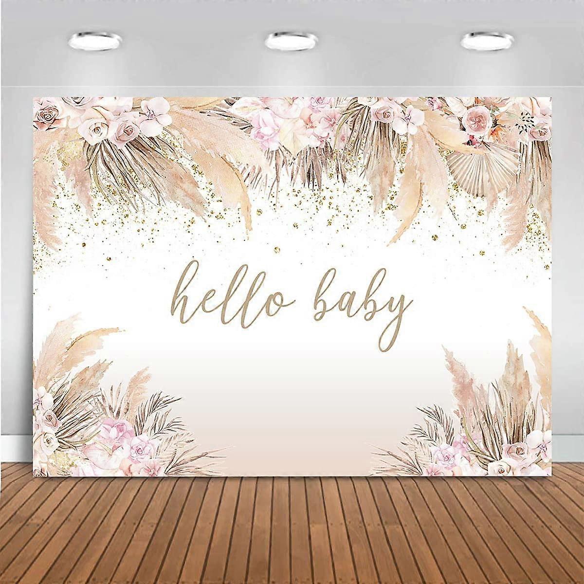 Boho Baby Shower Backdrop for Girl Boho Pampas Grass Pink Floral Hello Baby Shower Decorations Bohemian Oh Baby Shower Banner Background Photo Booth