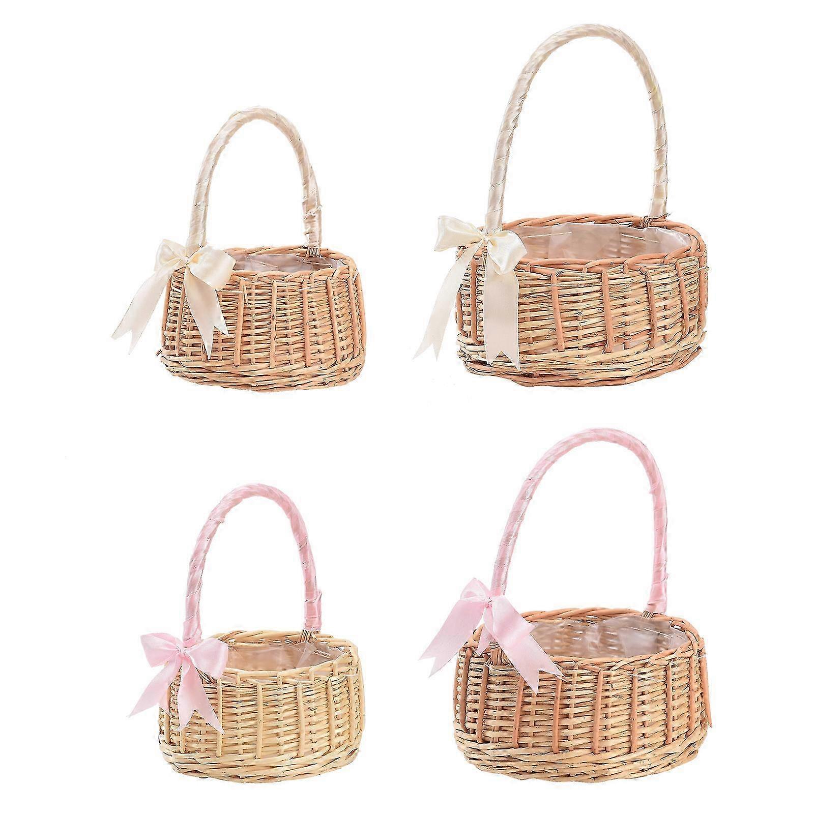 Wedding Bridal Storage Basket Flower Girl Handle Woven Willow Party Decors-S-White