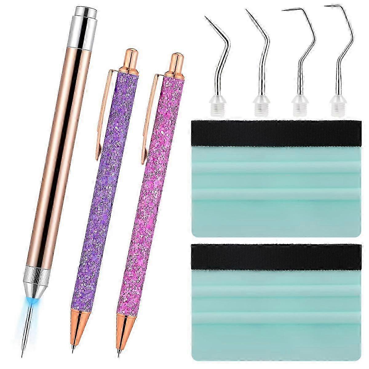 10Pc Pin Pen Vinyl Weeding Tool Kit,LED Weeding Tools with Light for Vinyl,5 Pen Head,2 Air Release--