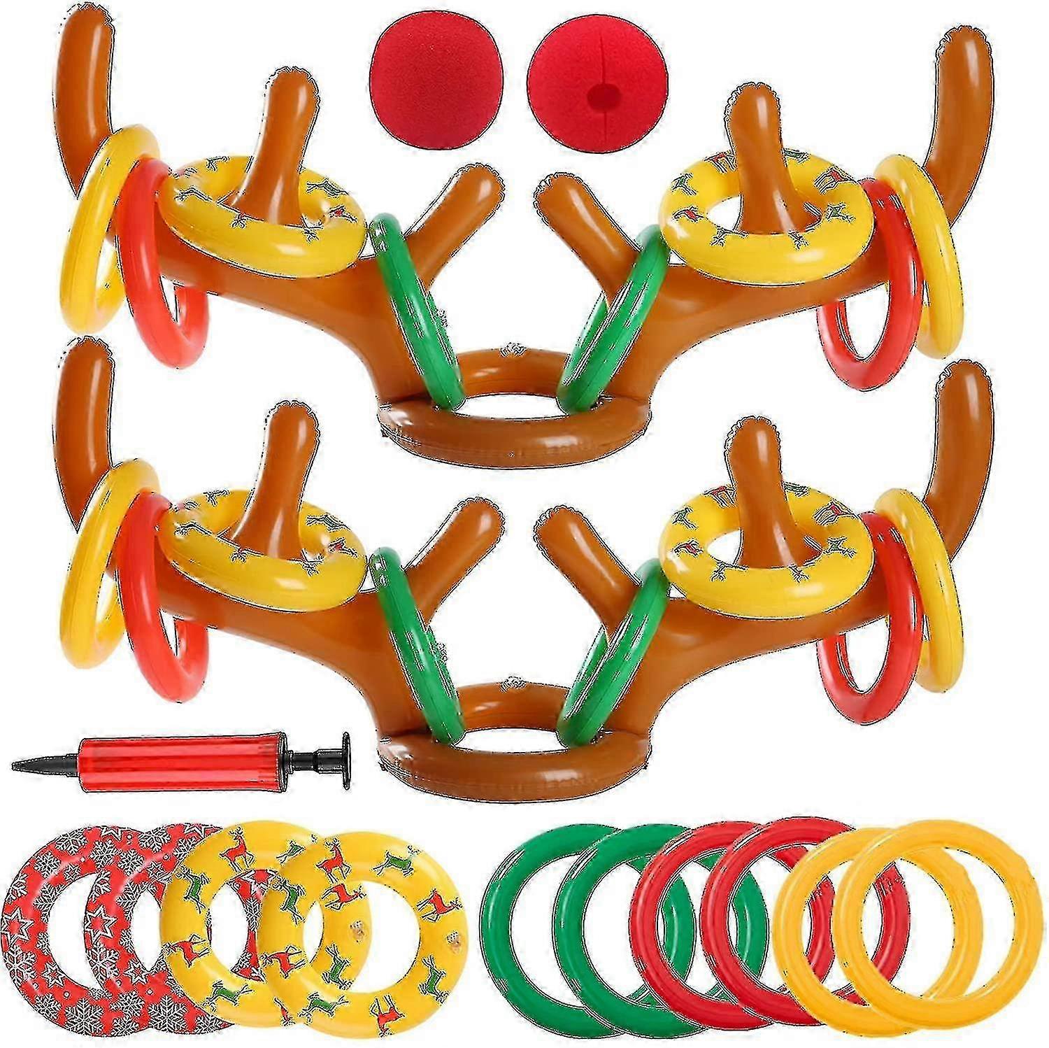 2 Sets Inflatable Reindeer Antler Ring Toss Game Christmas Tree Santa Ring Toss For Christmas Party Games--