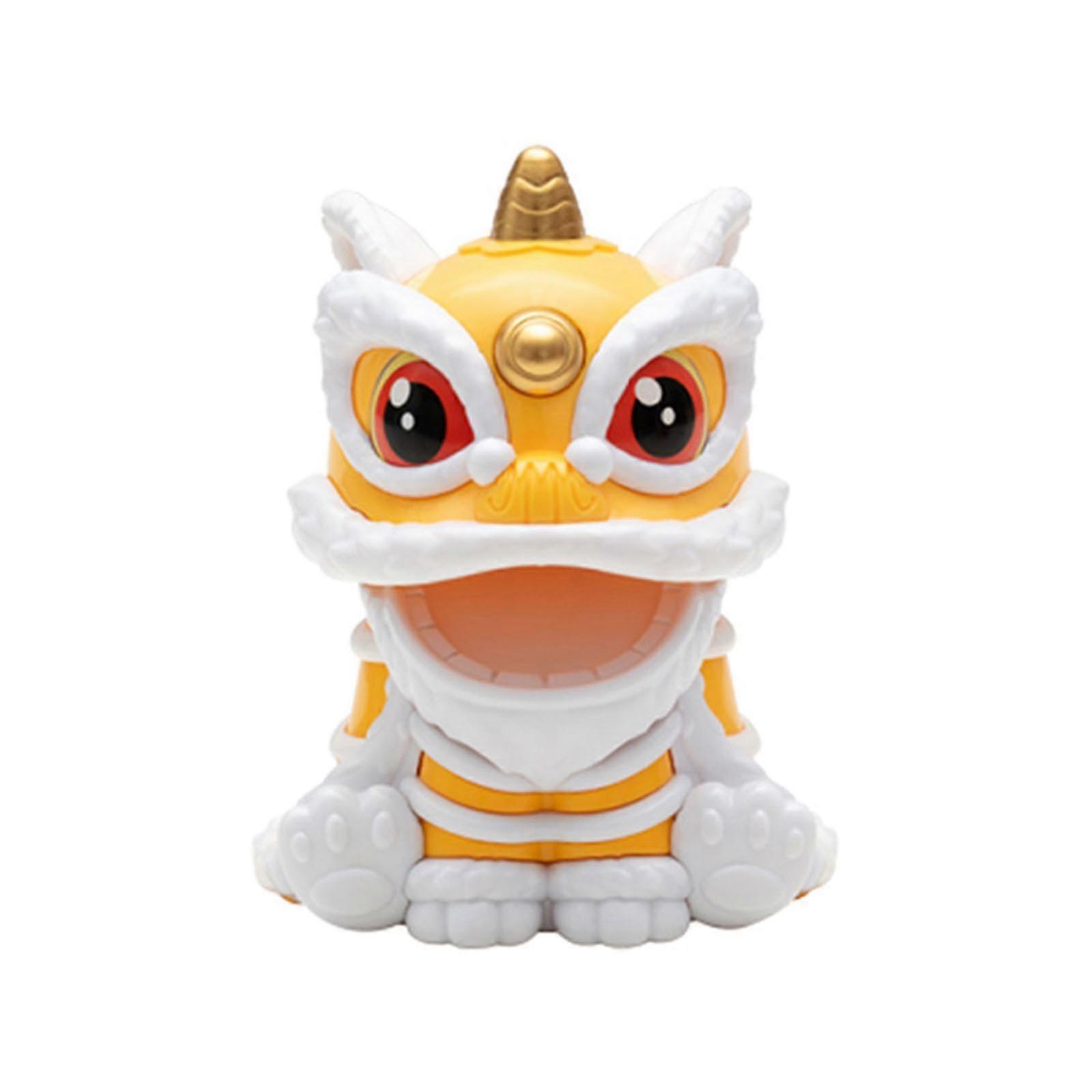 Chinese Style Lucky Lion Dance Model Solar Powered Home Decoration, 2024 Year of The Dragon Home Car Dashboard Decoration--Yellow