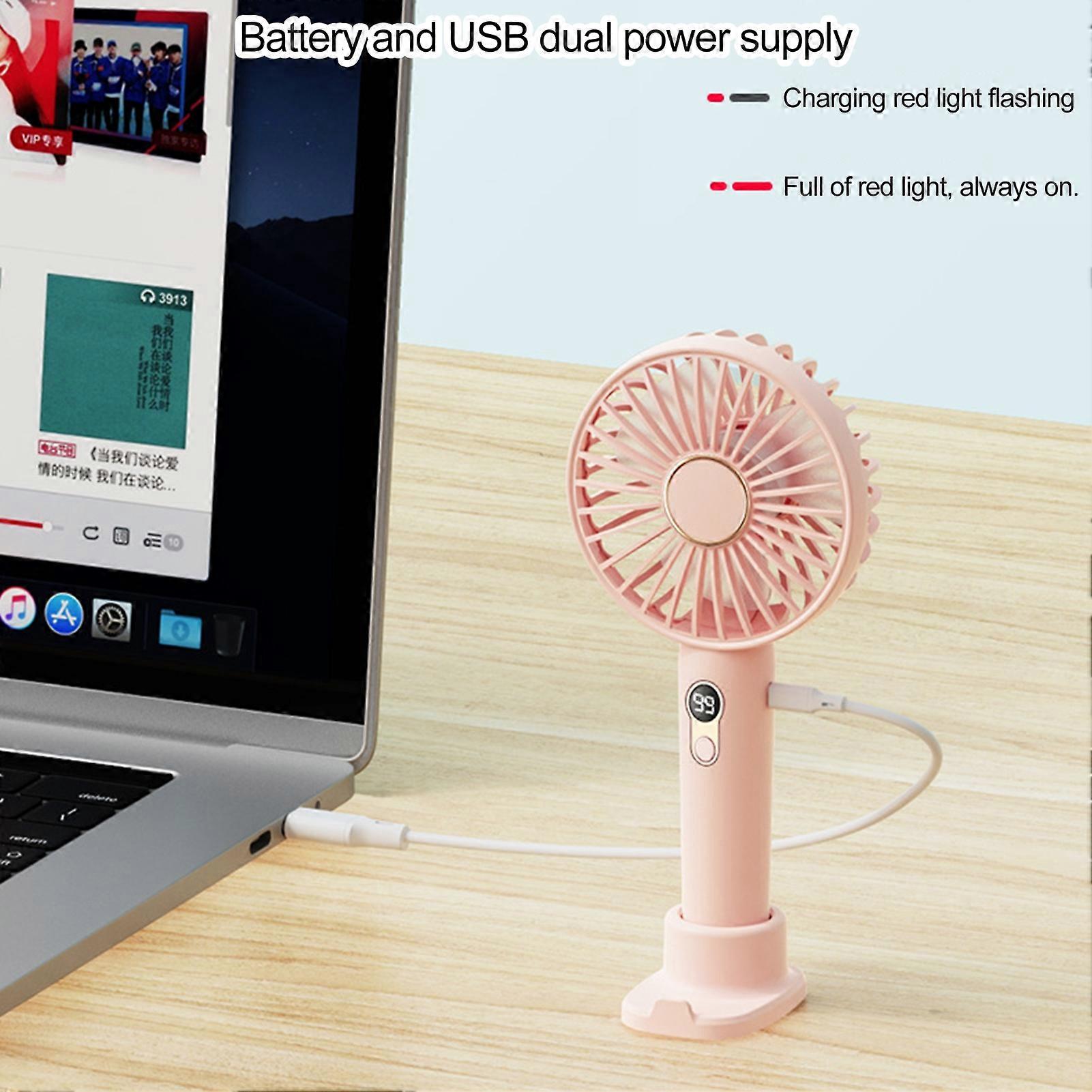 Xinyolin 1 Set Handheld Fan Adjustable 5 Gears 3 Blades Phone Holder Base Rechargeable Low Noise Mini Handheld Fan Daily Use Supply