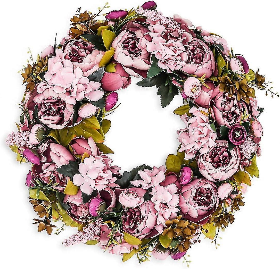 19Inch Artificial Peony Wreath with Green Leaves, Vintage Silk Blooming Flowers for Indoor Outdoor Door Wall Window Wedding Decor, Spring Summer Fall