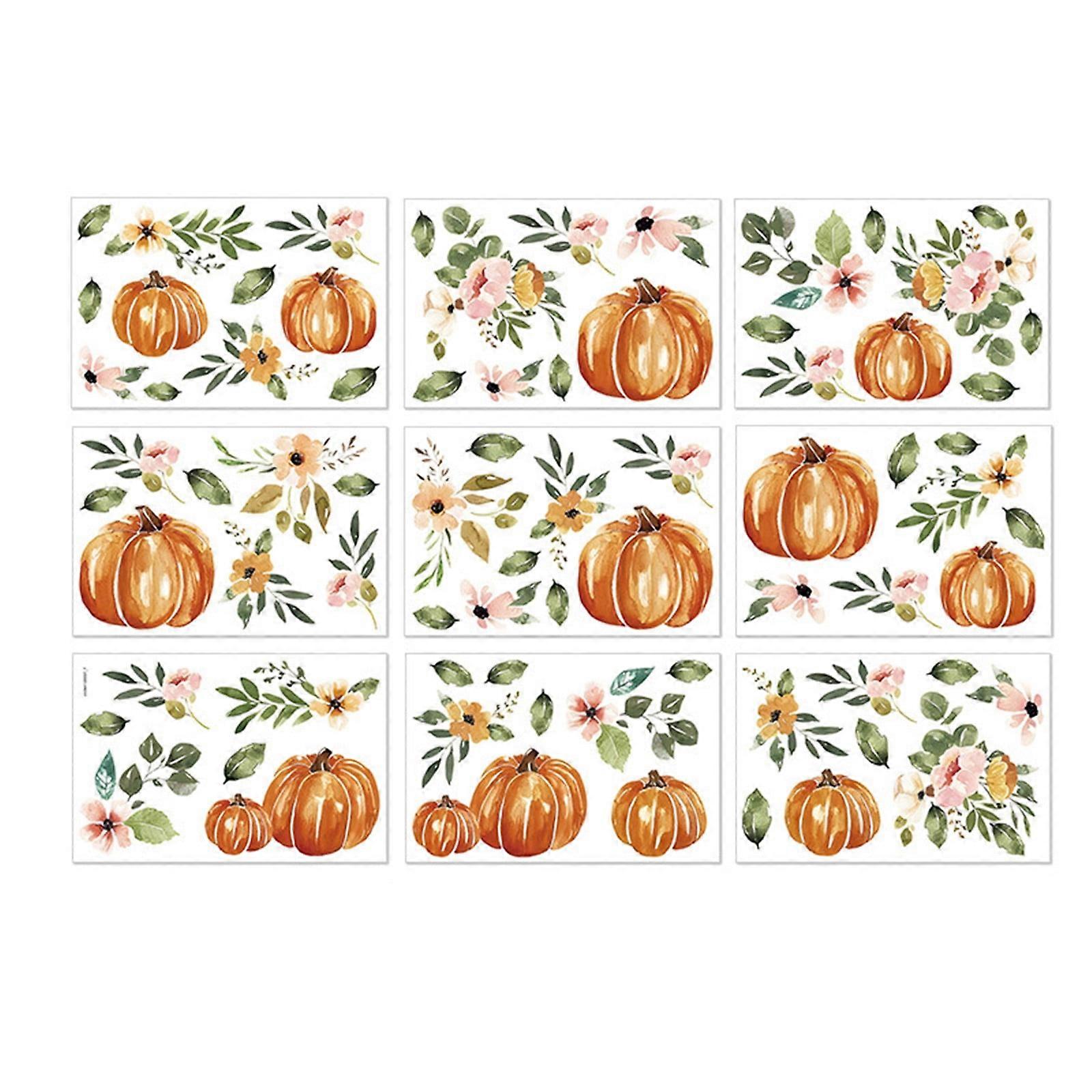 Autumn Pumpkin Window Stickers - PVC Plant Leaves and Maple Leaf Decals for Living Room Walls, Thanksgiving Fruit Decorations