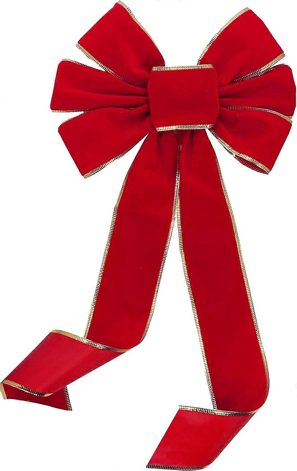 Red Velvet Gold Edge Bow - 10" Wide, 18" Long Tails, Farmhouse Country, Birthday, Thanksgiving, Christmas Wreath Bow, Fall Decor, Winter Decor,