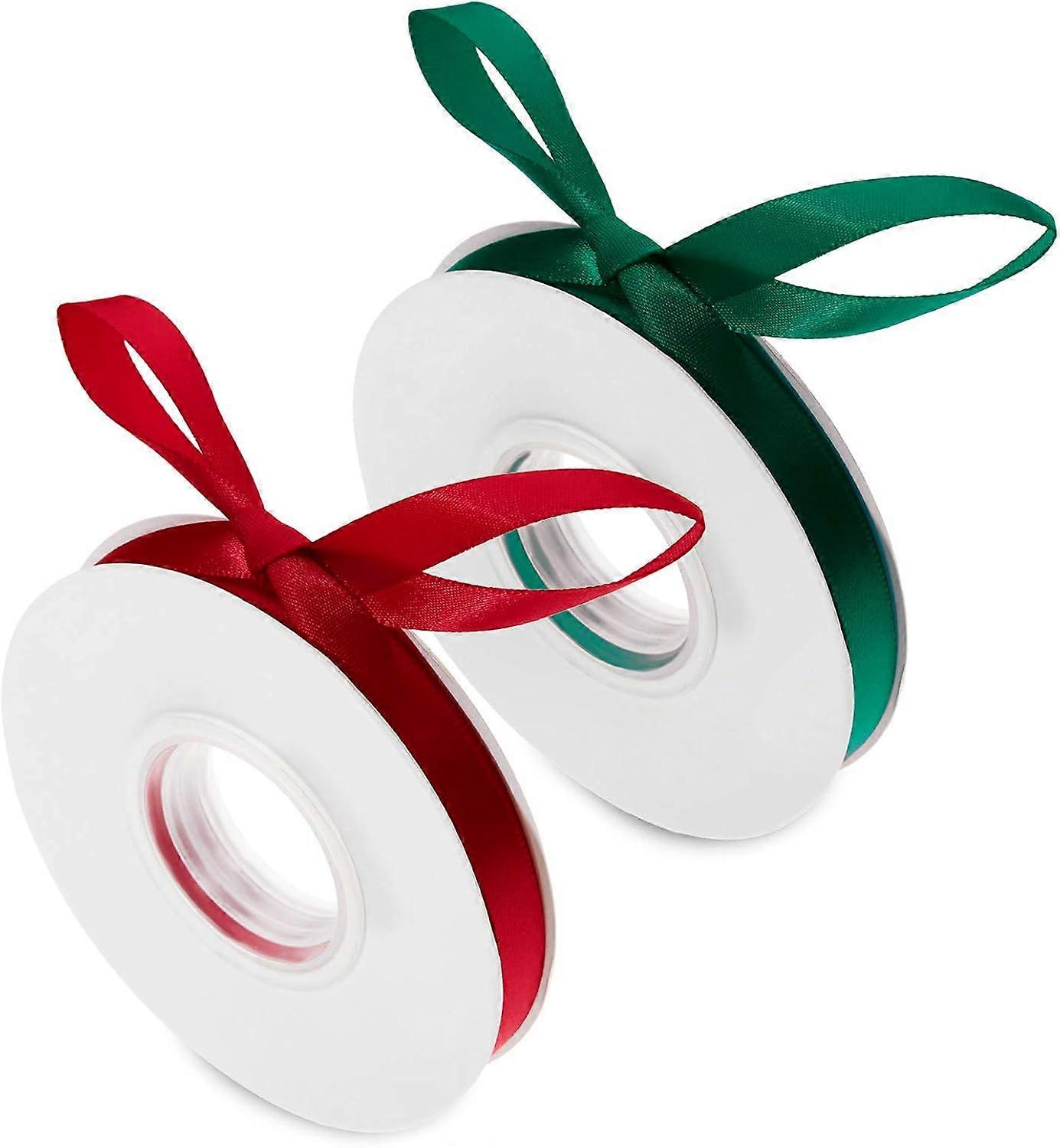 2 Rolls Wrapping Ribbon - Cake & Hair Accessories Ribbon for Crafts & Party Decorations (Red, Green) Red, Green