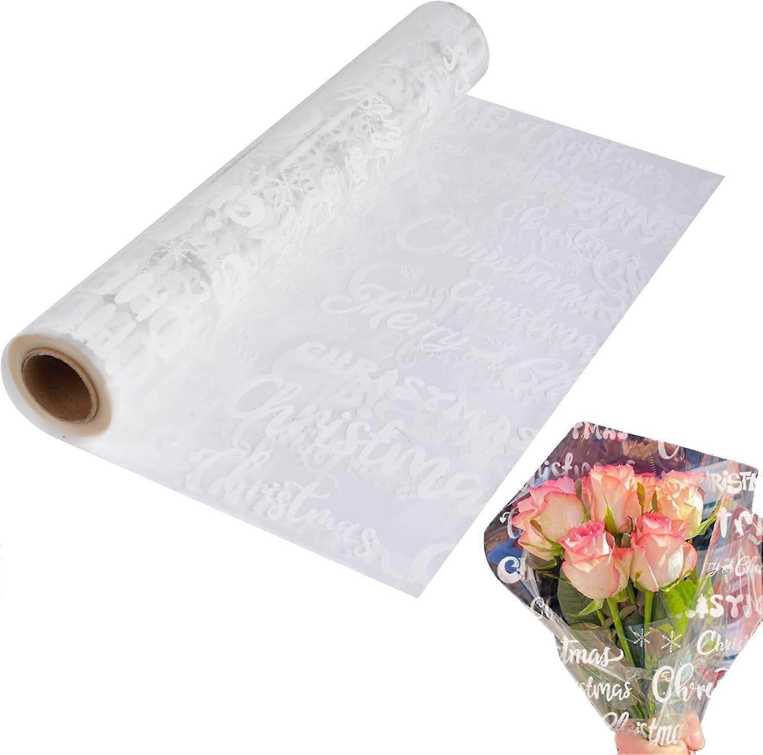 100 Ft x 32 In Christmas Cellophane Wrap Roll - Xmas White Letter Cellophane Wrap for Christmas Gift Baskets Flowers Party Decoration White Letter