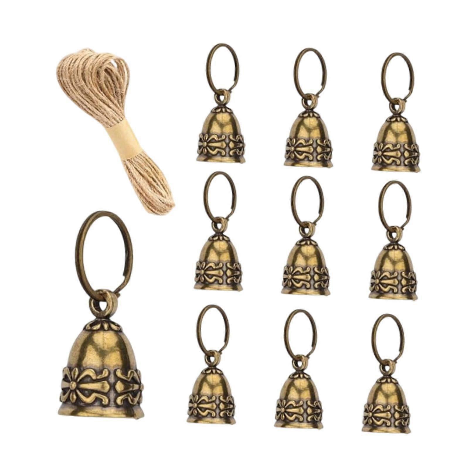 [Unique Gift]: Door hanger bells are unique gifts for friends, family, or yourself for New Year, housewarming, birthday, festival, or other special occasions [Premium Material]: The vintage hanging bells are made of quality alloy material, wear resistant, sturdy, and can be used for a long time [Multifunction]: The vintage hanging small be used for wind chime bells, door hanger bells, car bells pendants, etc, is a great ornament [Wide Application]: The decorative bell is used to connect tassels or other pendants, for weddings, parties, homes, doors, garden decorations [Package Included]: You will receive 10x Vintage Hanging Bells with key rings, 1x 10m Rope <b>Specification:</b>Material: Alloy<b>Size Chart:</b>Height: 1.7 inch<b>Package Includes:</b>10x Vintage Hanging Bells with key rings 1x 10m Rope<b>Note:</b>Please allow slightly errors 1-2cm/0.39-0.79inch differences due to manual measurement.