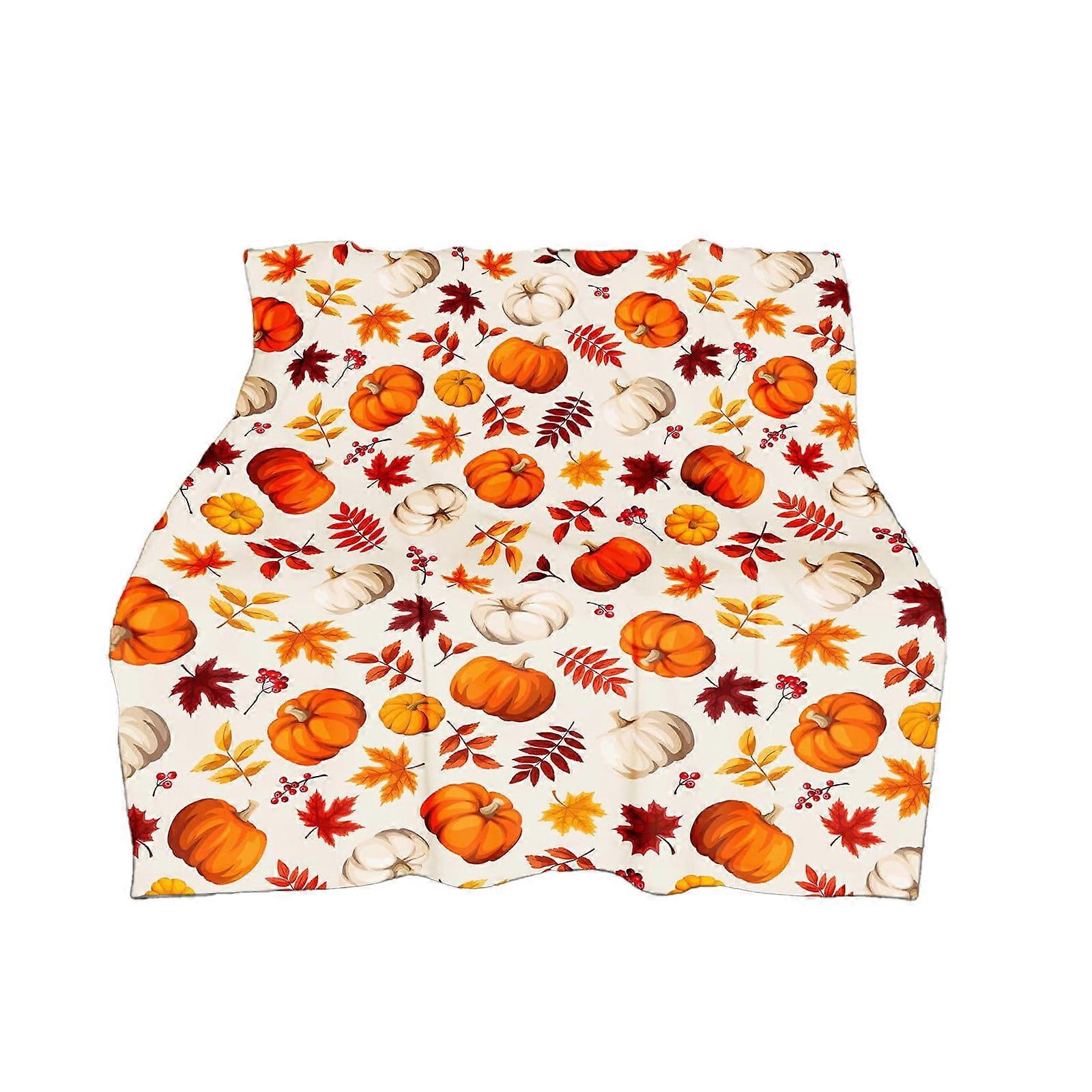 Pumpkin Blanket - Super Soft Flannel Fleece, Cozy Fall Thanksgiving Decor, Double-Sided, 39.3 x 29.5 Inches, Orange-Yellow Cream
