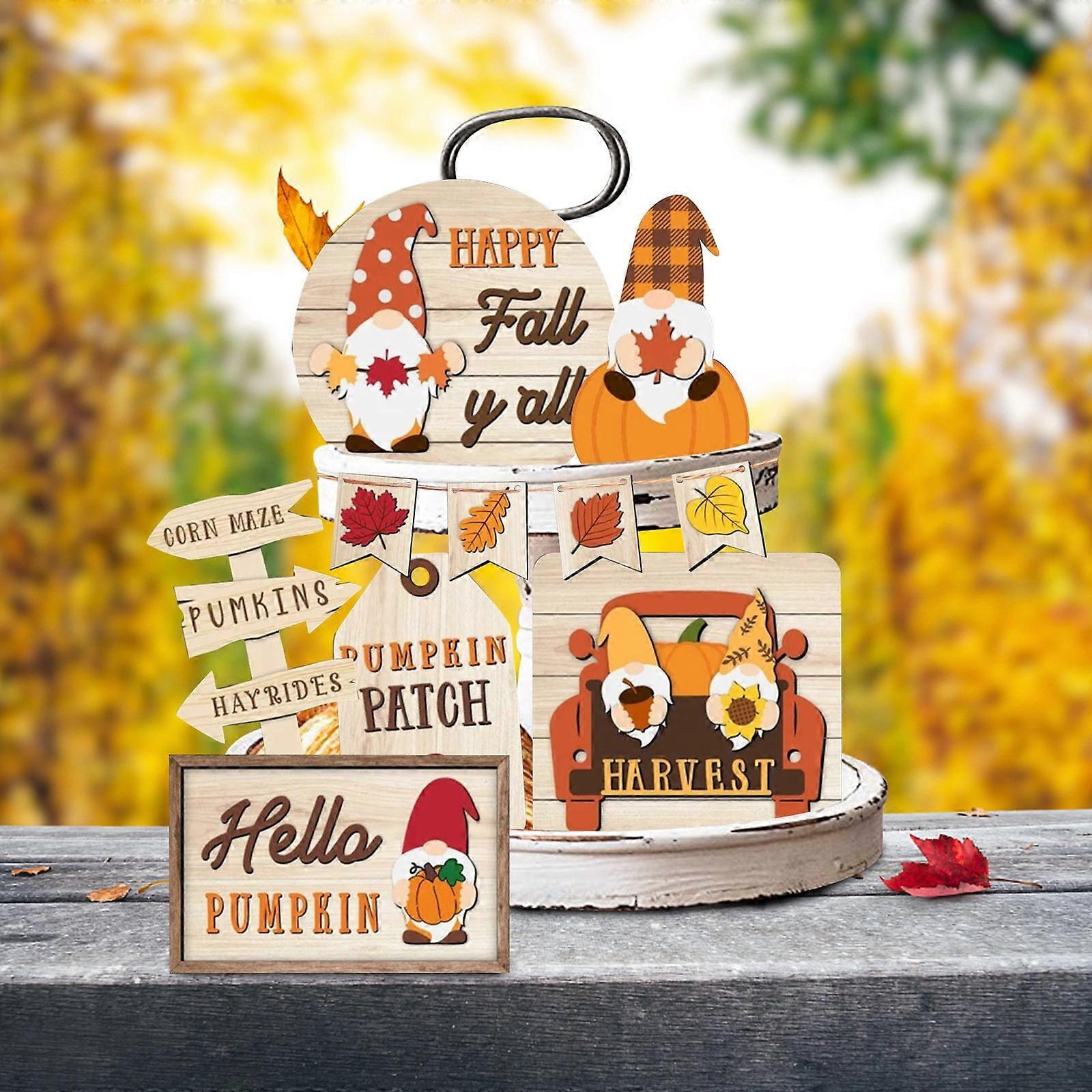 Fall Decorations for Home Fall Table Centerpiece Fall Tiered Tray Decor Set Pumpkin Gnome Truck Wood Sign Rustic Farmhouse Decor Hello Fall
