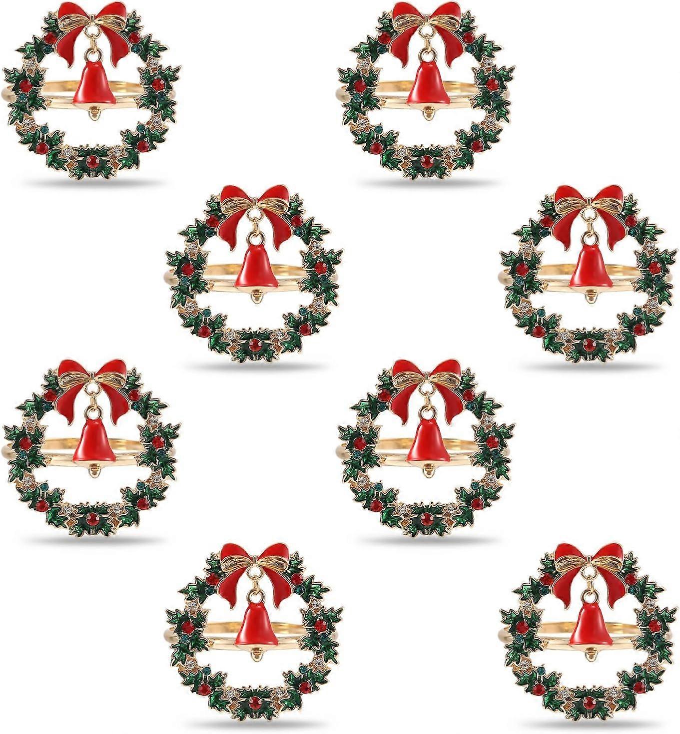 Christmas Napkin Rings Set of 8, Bell Napkin Rings Holders for Cloth Napkins, Xmas Dining Table Setting Decoration, Rhinestone Napkin Buckles for