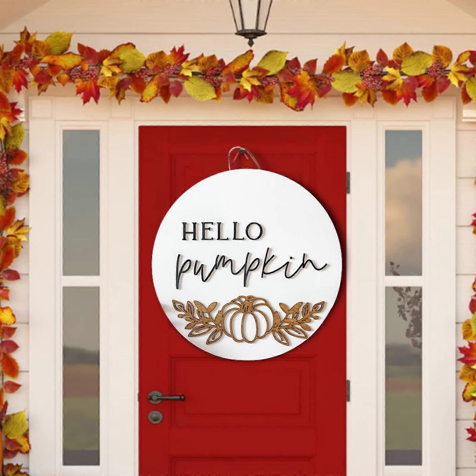 Fall Pumpkin Welcome Sign for Front Door 11.81*11.81 in Wood Pumpkin Hanging Wooden Door Sign Fall Decorations Hanger for Fall Harvest Thanksgiving