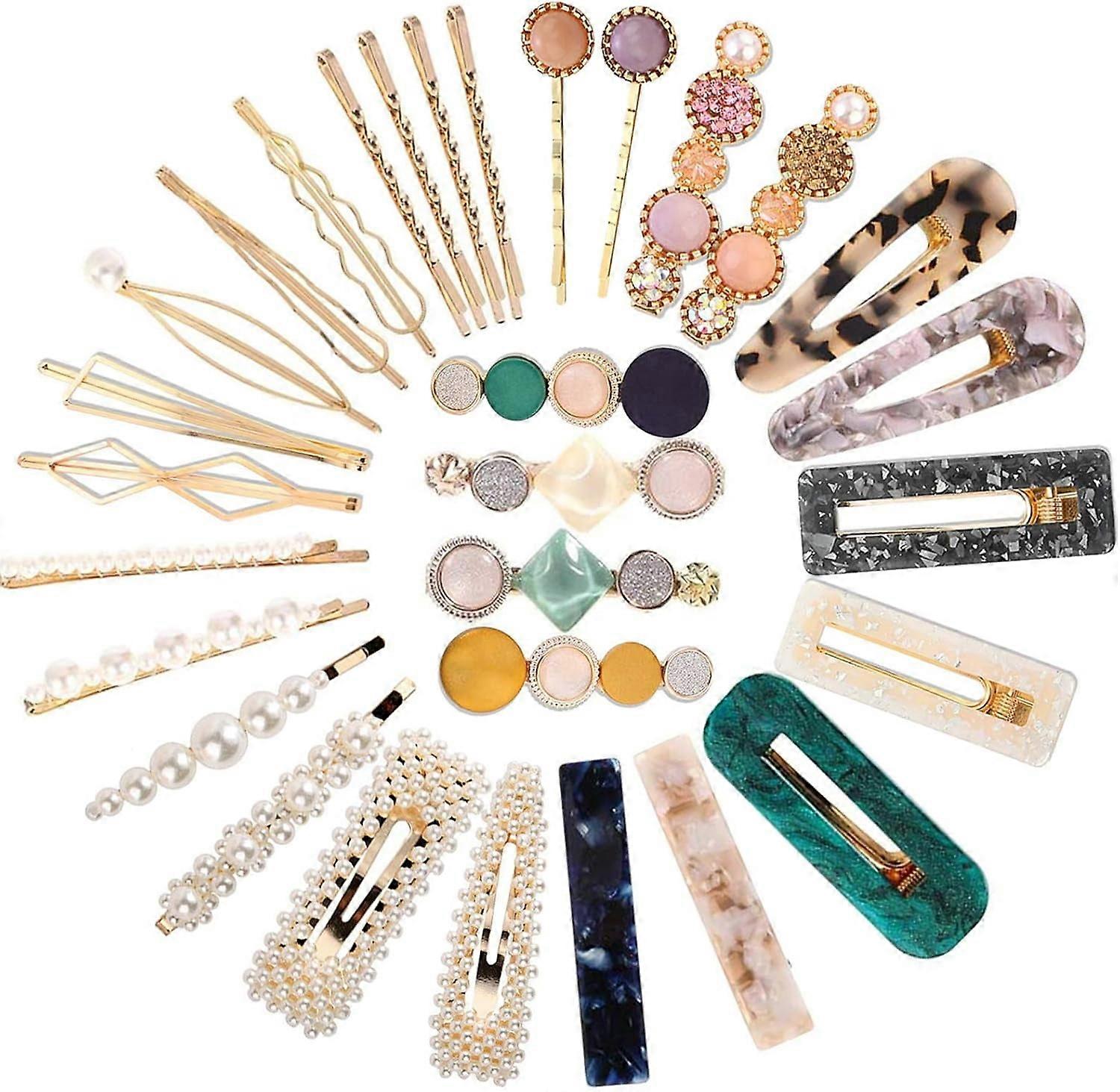 ZYNERY 30 Pieces Hair Clips, Rhinestone Hair Clips, Metal Hairpin, pearl hair clips, metal vintage hair clips Hair Accessories for Women Girls