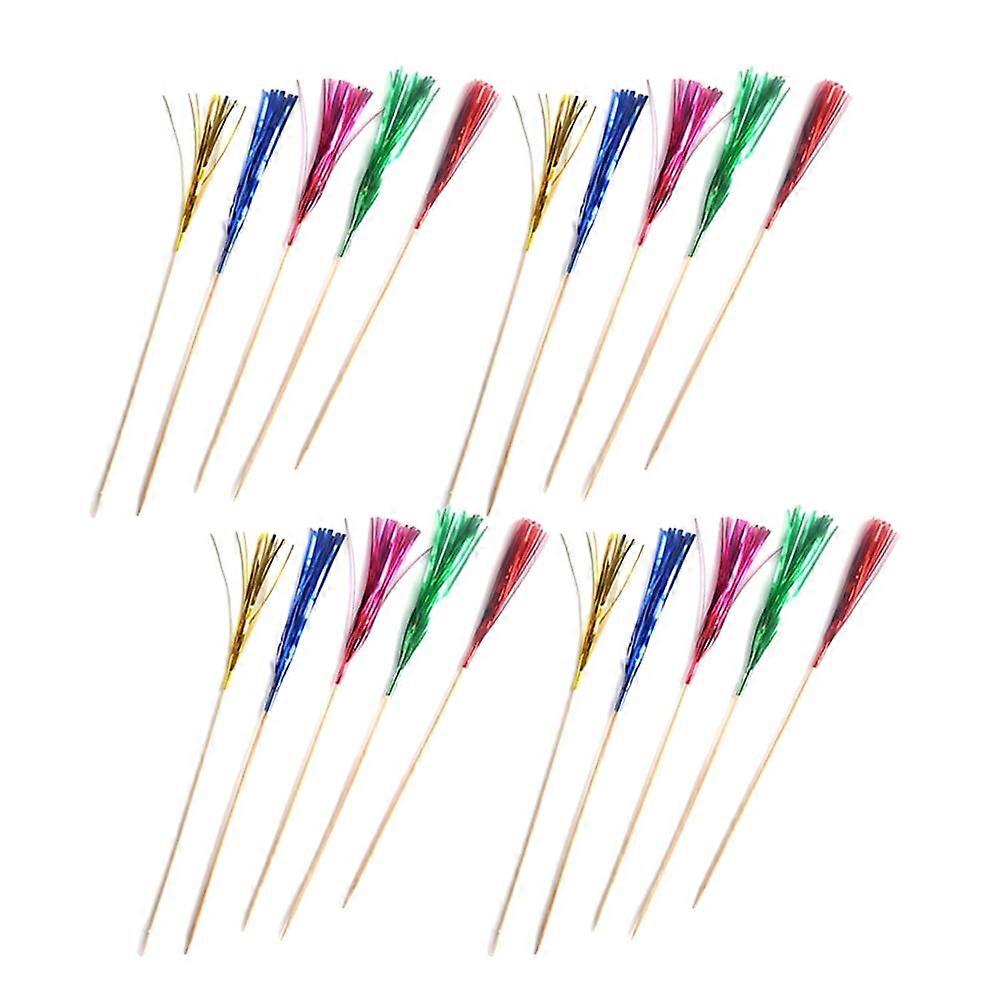 Qusenong 100pcs Colorful Firework Disposable Cake Picks Fruit Dish Decorative Pick Cocktail Sticks Party Supplies for Hotel KTV Bar (Mixed Color)