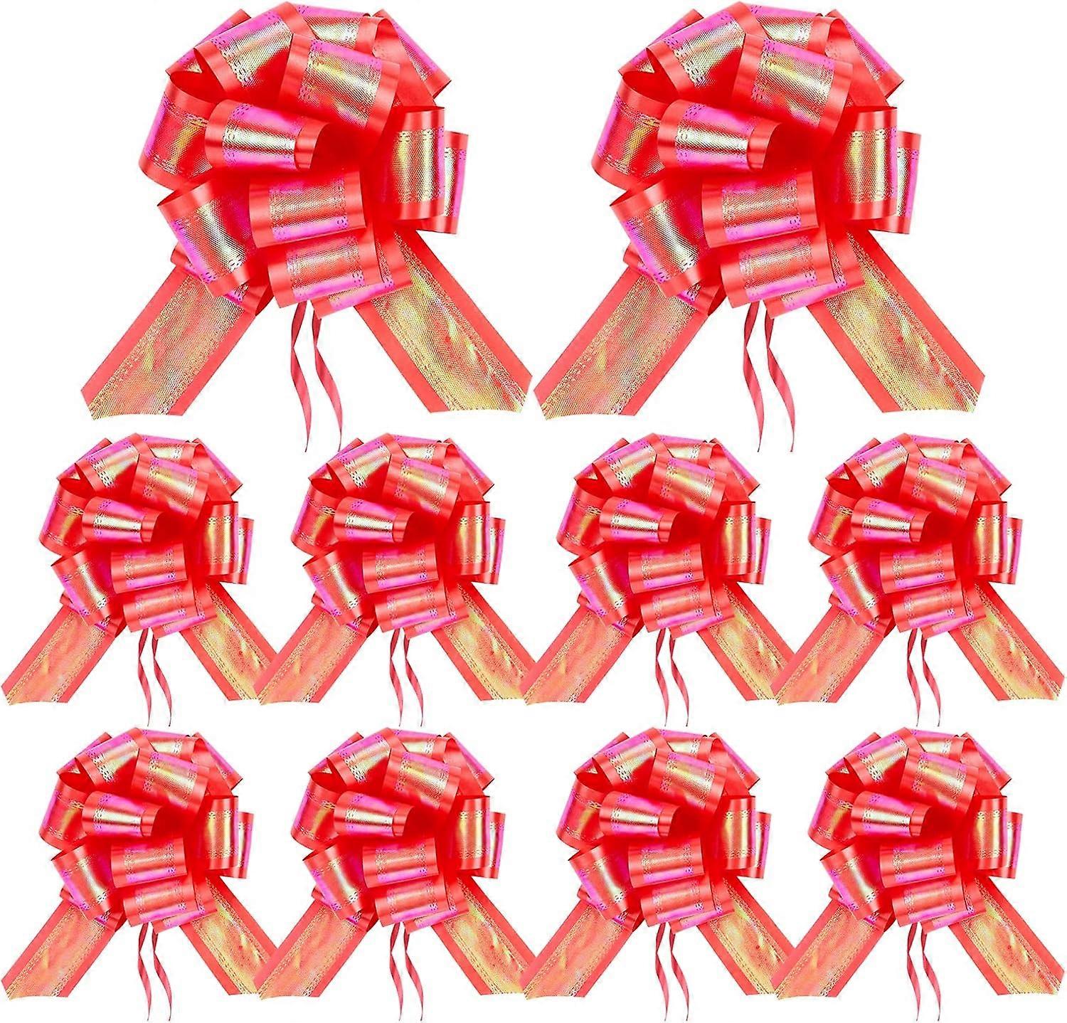 Gift Baskets Christmas Bows for Presents Decoration Wrapping Birthday Pull Gift Bows A5-10pcs-Red