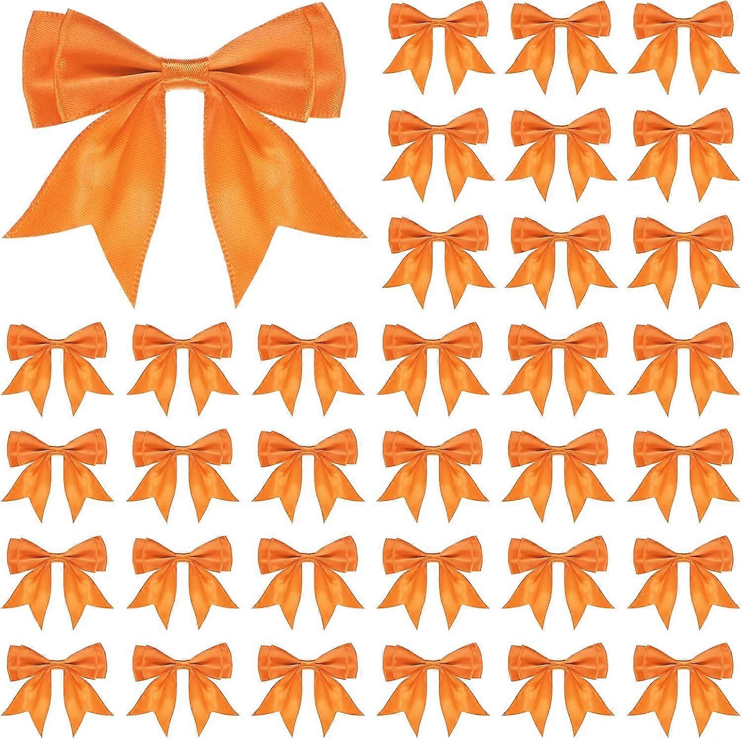 50-Pack Double-Deck Pre Tied Bows 3.6x2.2 Inch Checkered Fabric Pre Satin Ribbon Bows Boutique for Craft DIY/Treat Bags/Hair Bow Sewing