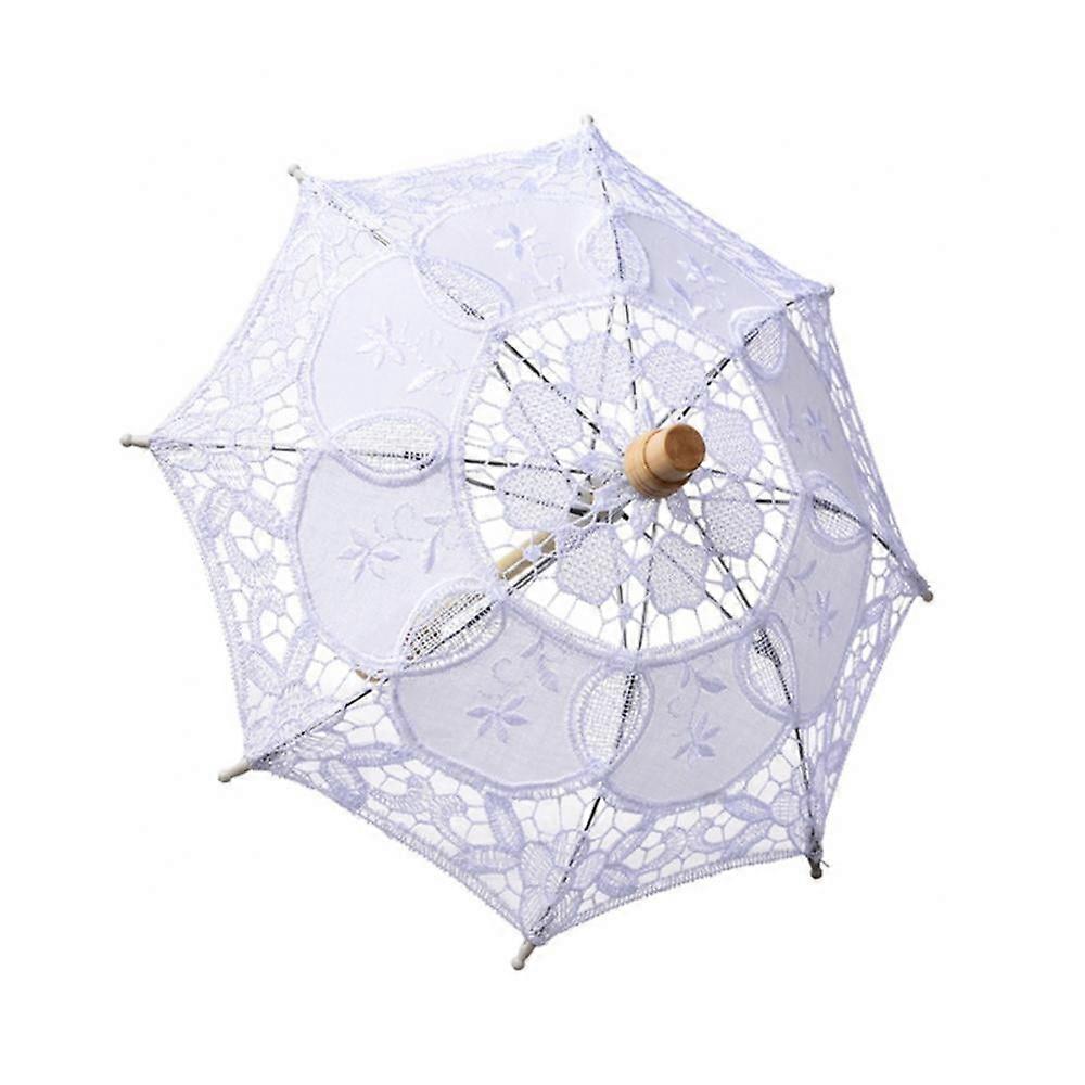 Women Lace Parasol Umbrella Wedding Cotton Fashion Wooden Handle Bridal Umbrella Decoration