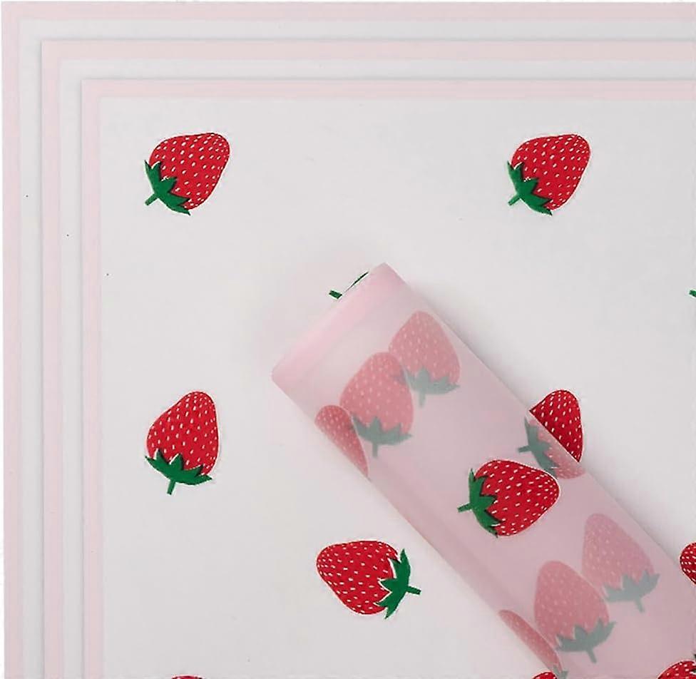 20 Sheets 57x57cm Strawberry Flower Wrapping Papers Waterproof Floral Bouquet Wrapping Papers Florist Supplies Packaging Papers Plastic Gift
