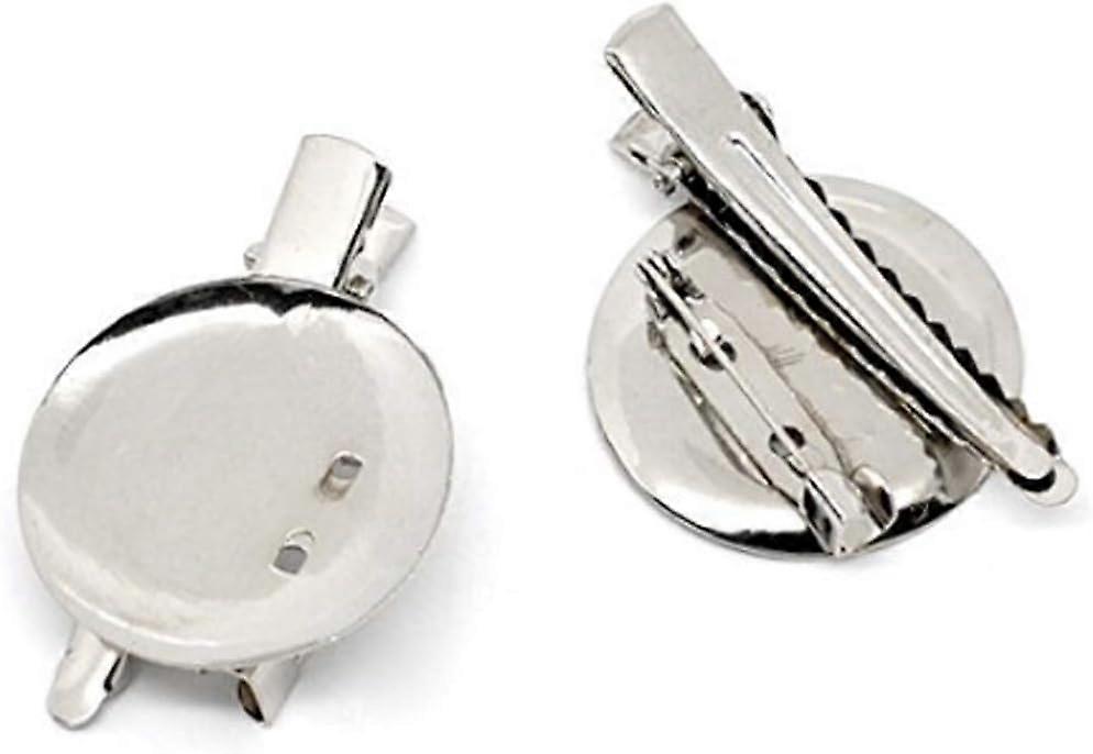 20 Pcs Silver Brooch Blank Round Tray with Alligator Clip and Pin for Making Corsage, Name Tags and Jewelry Making (30mm)
