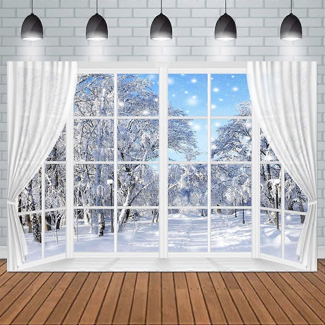 Winter Scene Backdrop Holiday Wonderland Snowflake Photography Background Window Forest Christmas Party Decoration Tree Landscape Kids Portrait