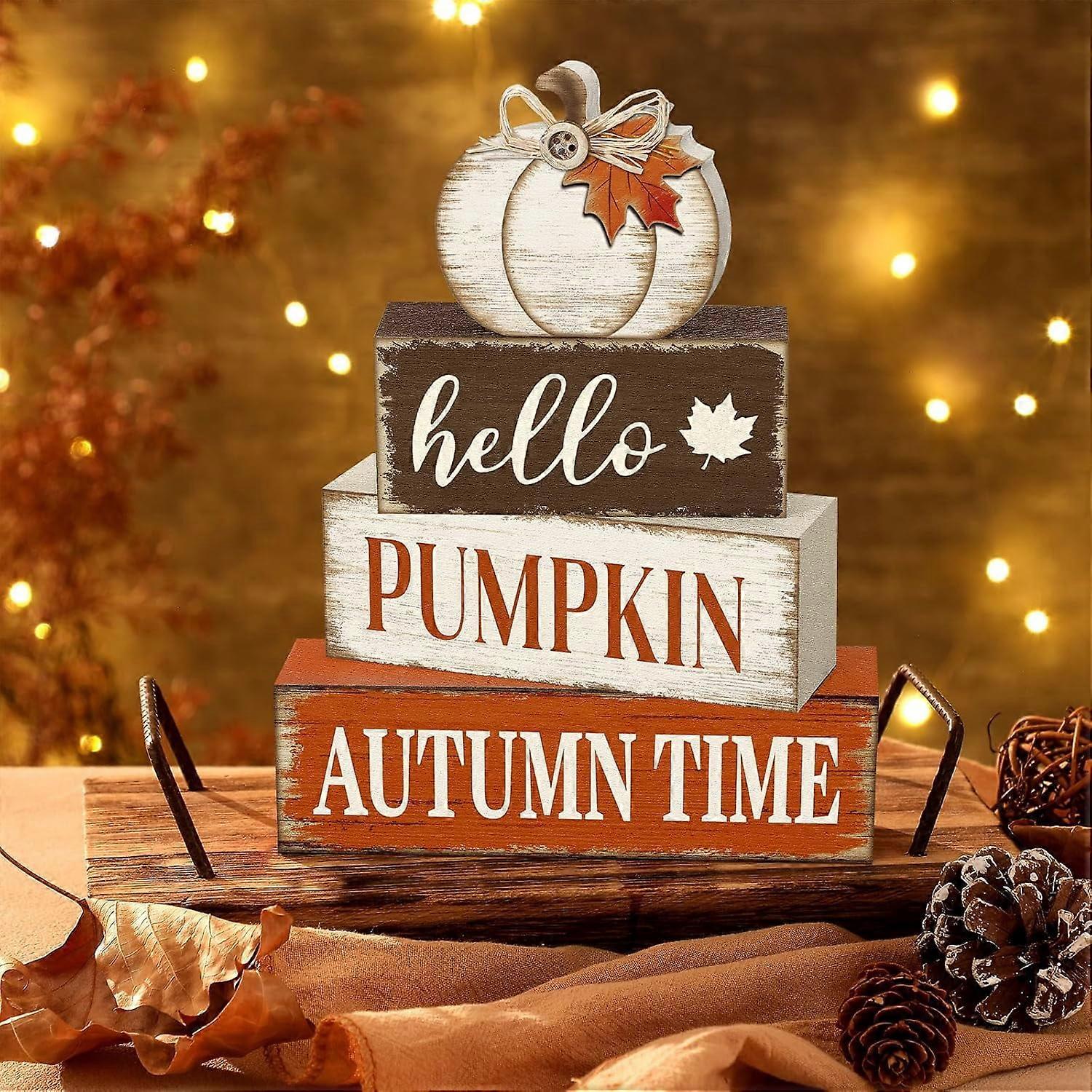 4 Pcs Wooden Table Decorations Rustic Signs Tiered Tray Decor Wood Farmhouse Vintage Ornaments Gift Centerpiece Tabletop Decor for Entryway Home Desk