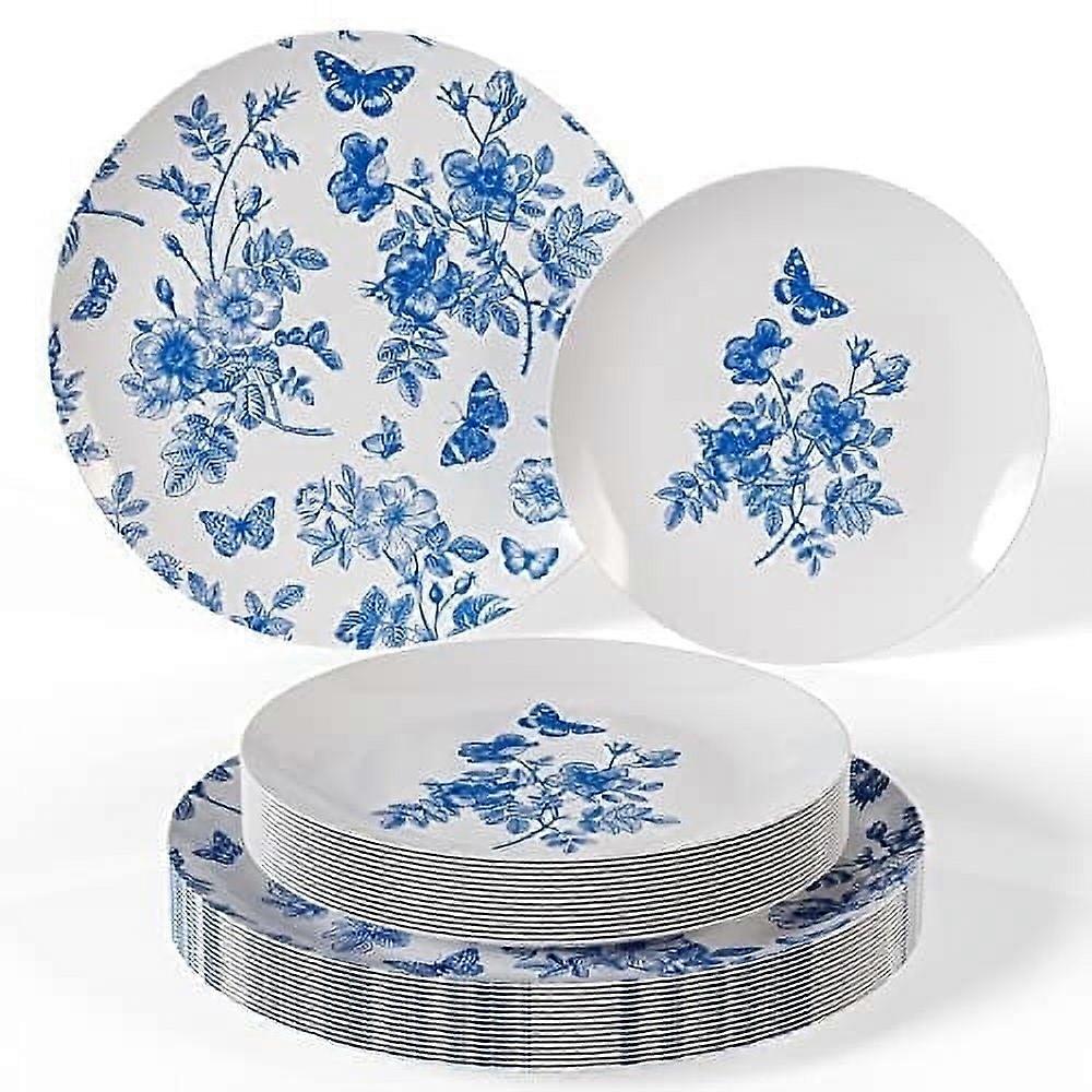80-piece botanical design disposable tableware set - 8-inch dessert plates and 10-inch party plates