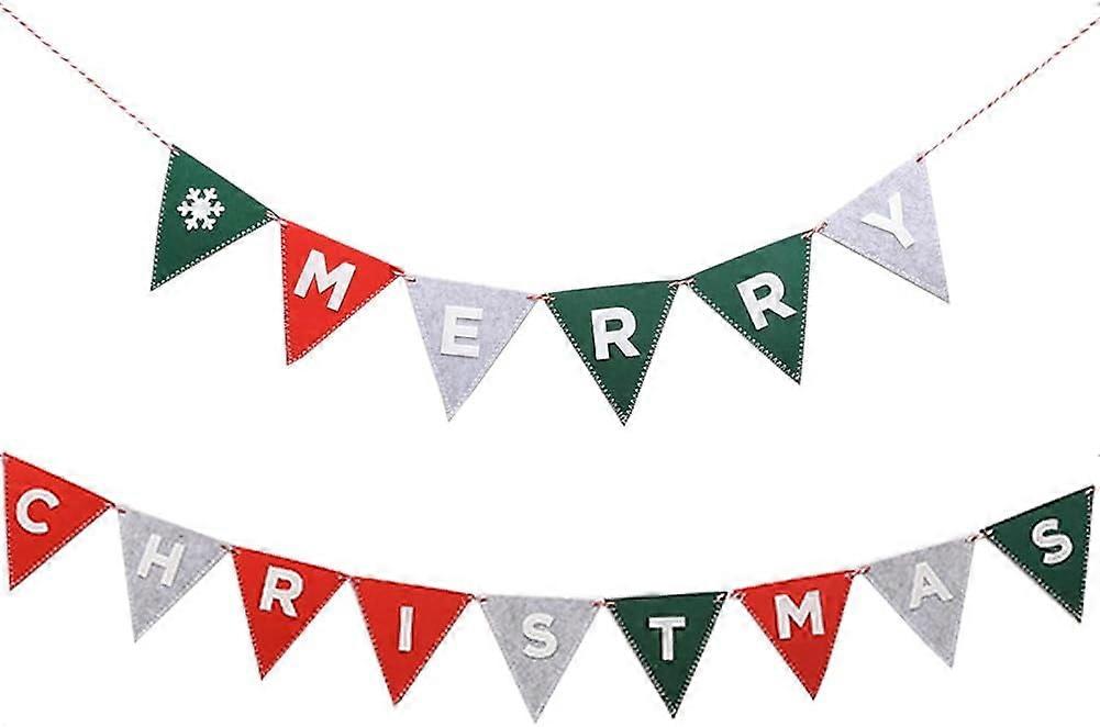 Christmas Banner Flag Xmas Tree Garland 15Pcs Pendants 3M Rope Triangle Merry Christmas Cloth Banners Bunting for Christmas Tree Holiday Indoor