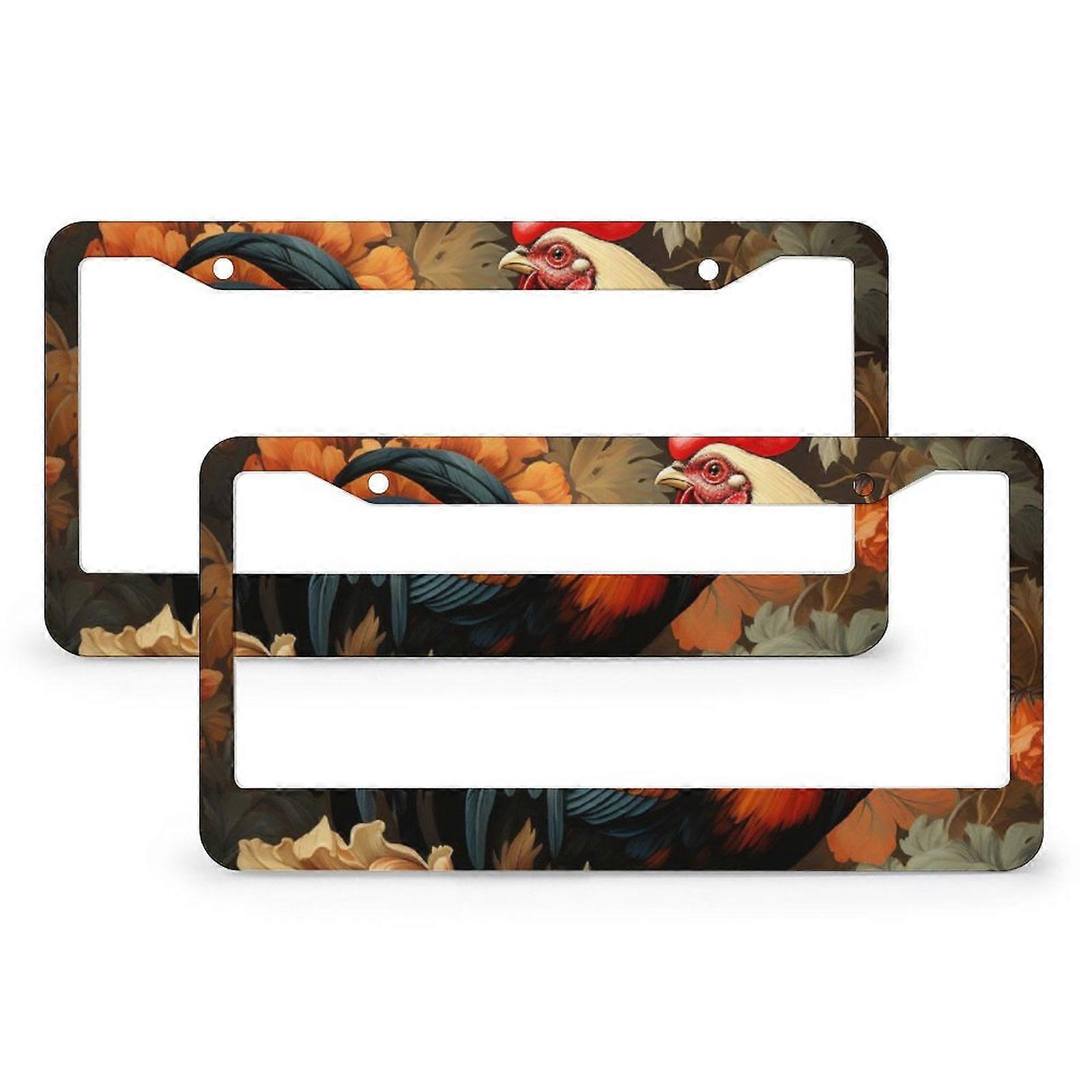 License Plate Frames Vintage Farmhouse Fall Pumpkin Sunflower Rooster Car Tags Frames Holder 2 Pieces Autumn Thanksgiving Day Aluminum License Plate