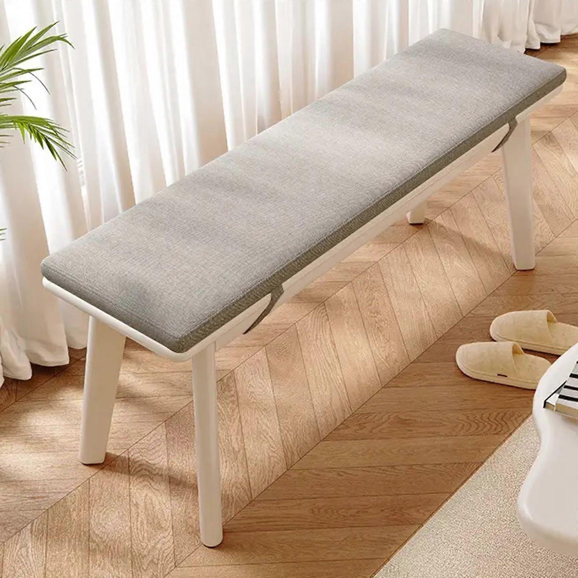 Wooden Upholstered Bench Seat Narrow Entryway Bench White 47.2x11.8x17in Solid Wood End Of Bed With Removable Cushion