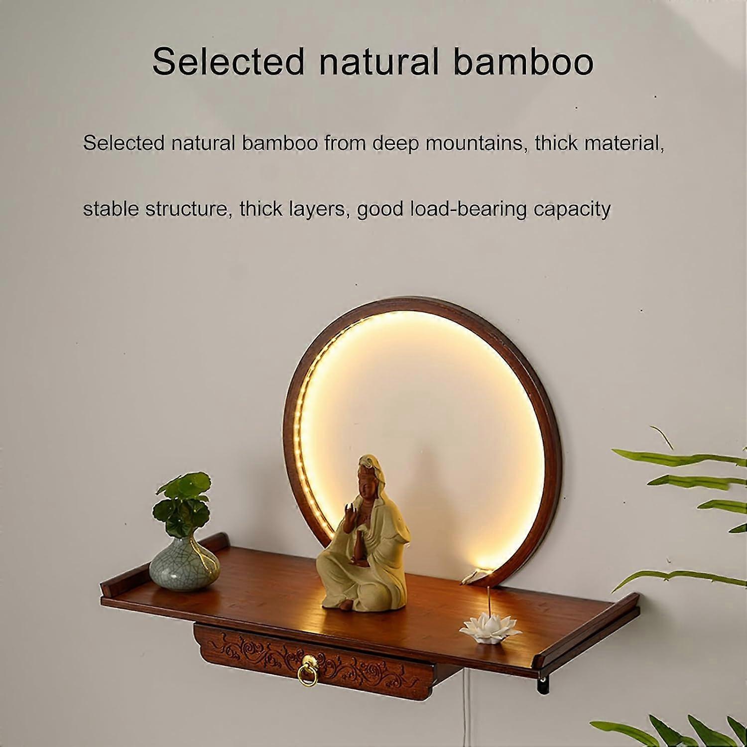 Solid Wood Meditation Table With LED Light Buddhist Prayer Altar, Tea House Decor, Dark Brown Finish, 40x26 cm / 15x10 in