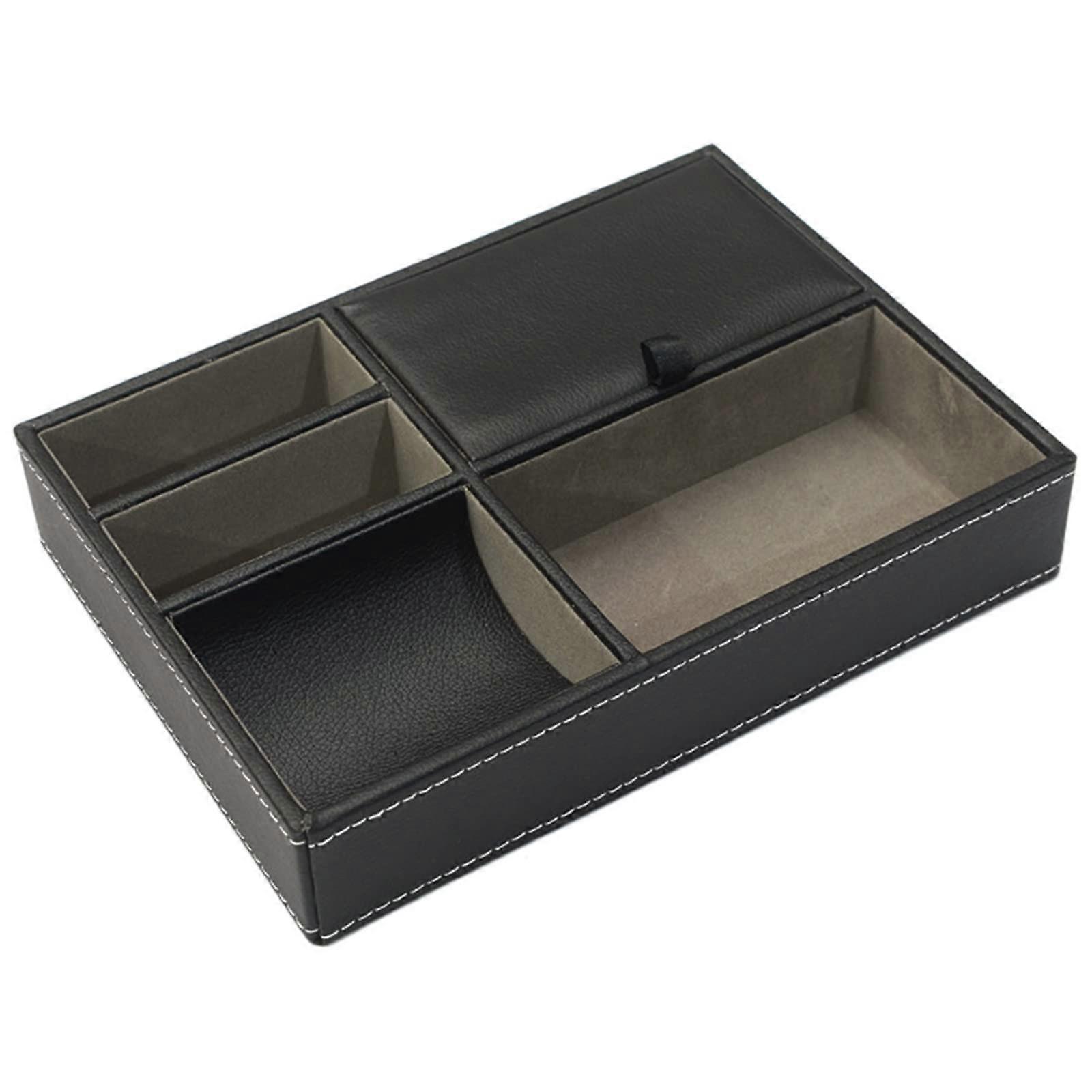 Closet Mounted Storage 1Pc PU Leather Nightstand Tray Organizer Dressing Room Jewelry Keys Phone Wallet Watch Black