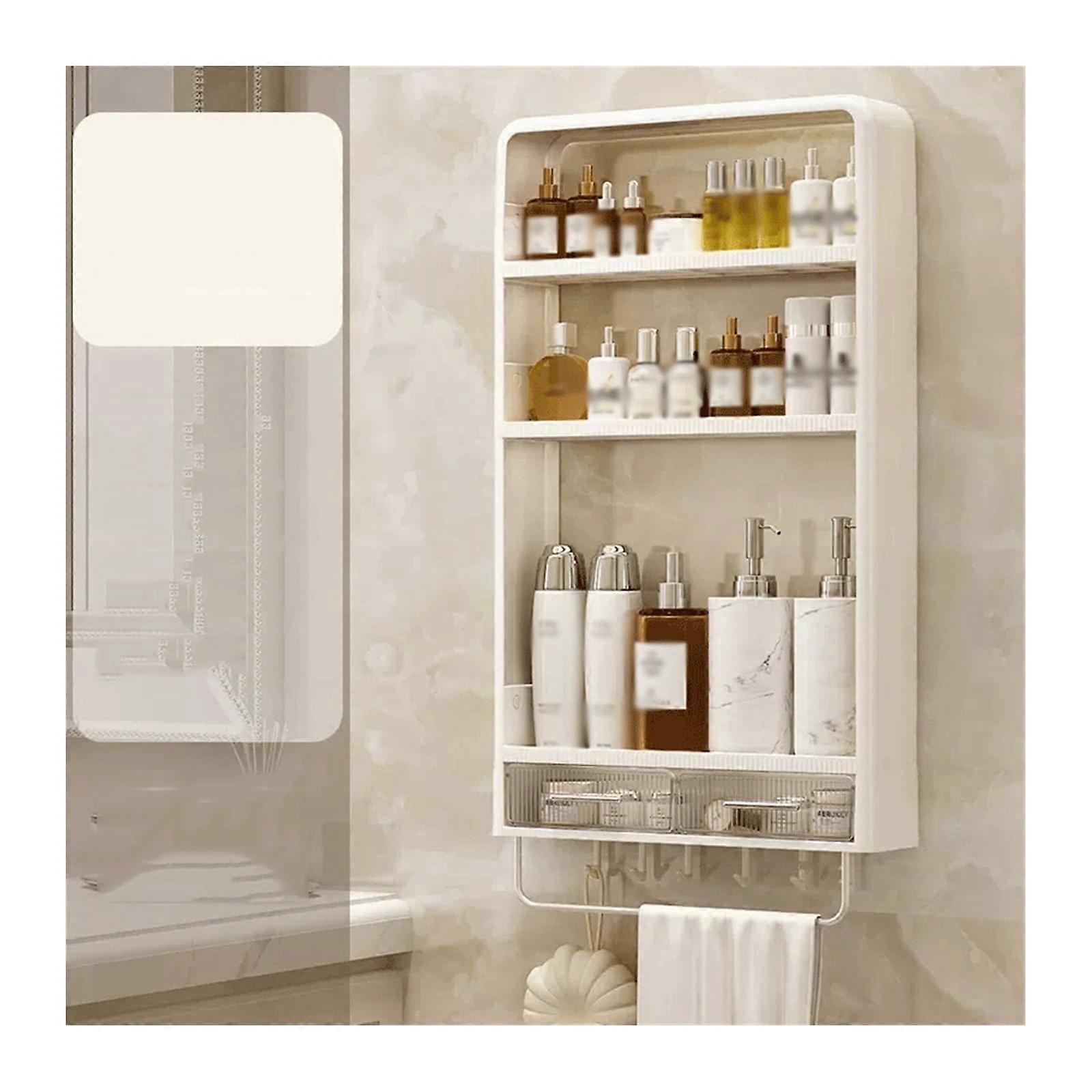 Wall Shelves ThreeLayer WallMounted Plastic Storage Rack With Drawer And Towel Rack For Skin Care No Perforations