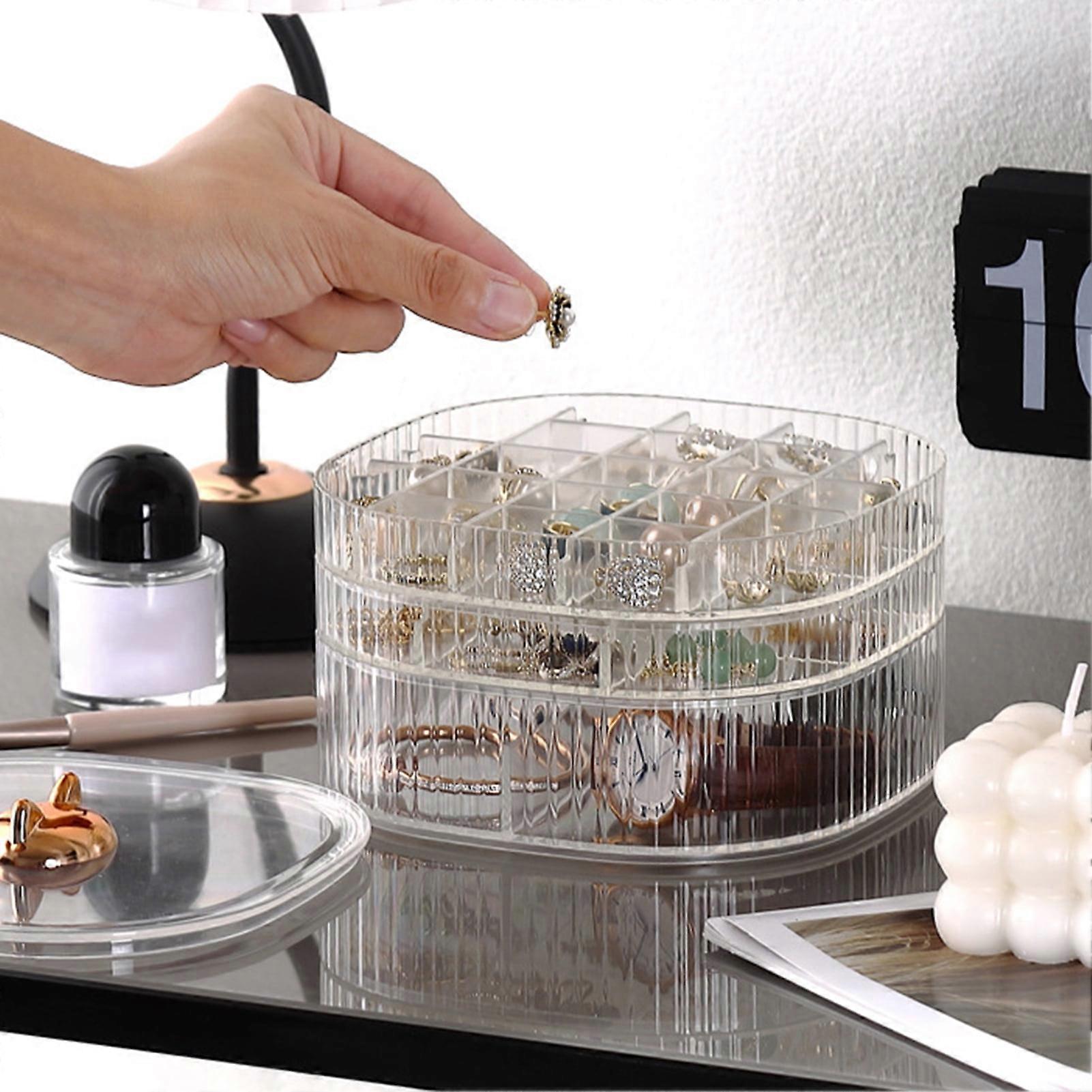 SUSUchens 3-Layer Acrylic Jewelry Organizer Box Large Capacity Transparent Dustproof Earrings Rings Necklaces Storage Container Green