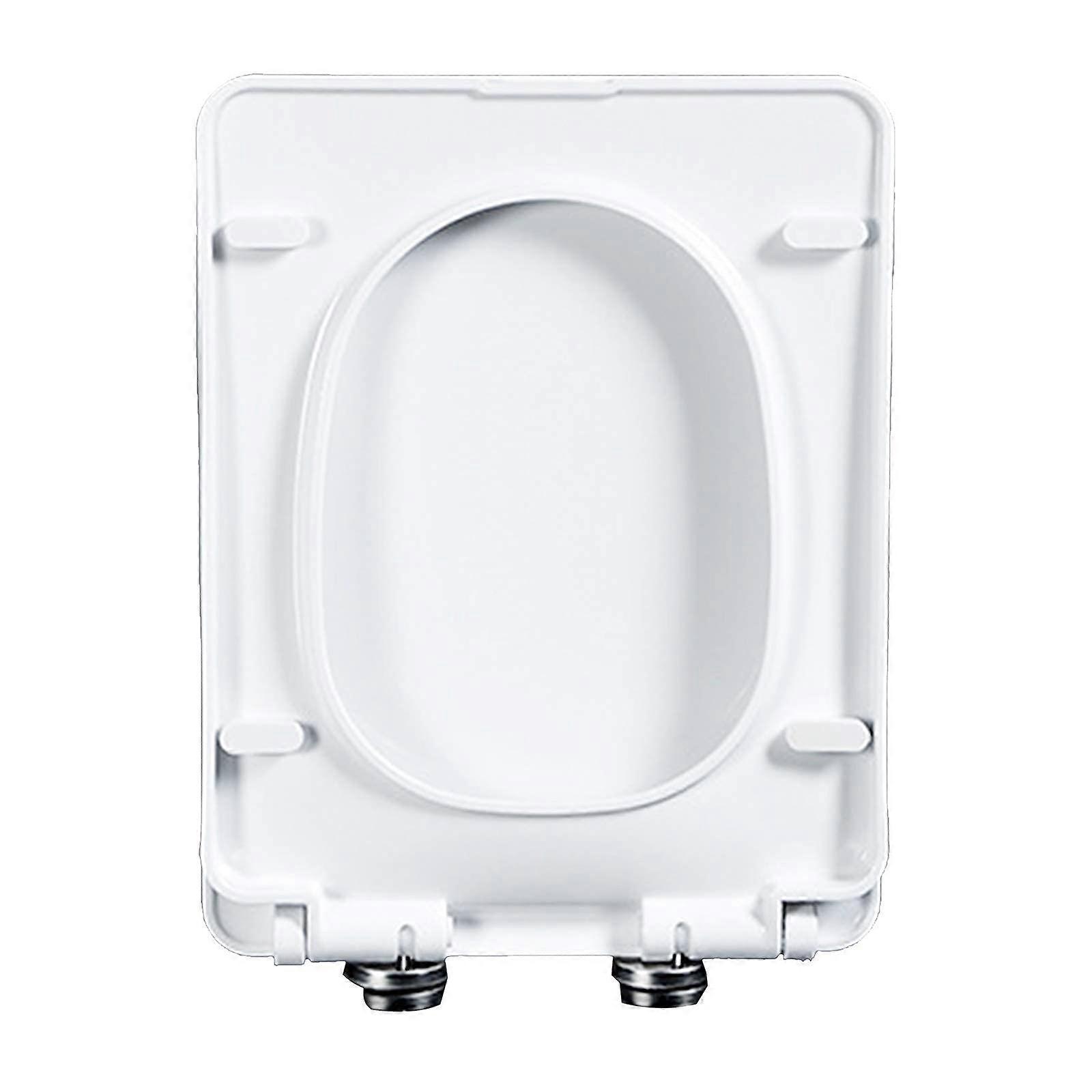 Deluxe Toilet Seat Square Lid Cover With Adjustable Hinge Never Loosen Hinges Eco Friendly Polypropylene White 03A