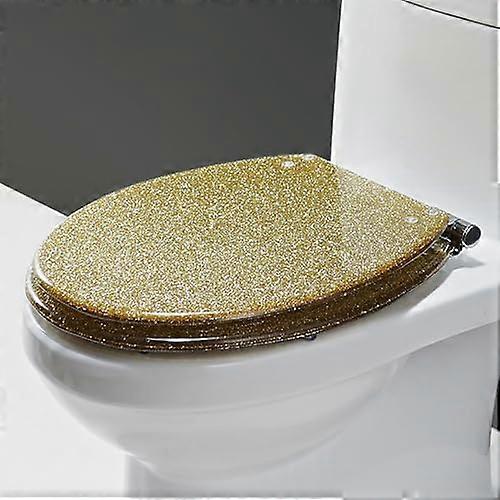 Glitter Toilet Seat Round 16.5Inch Quick Release SlowClose Lid NonSlip Easy Install Resin Safe Material Black Gold