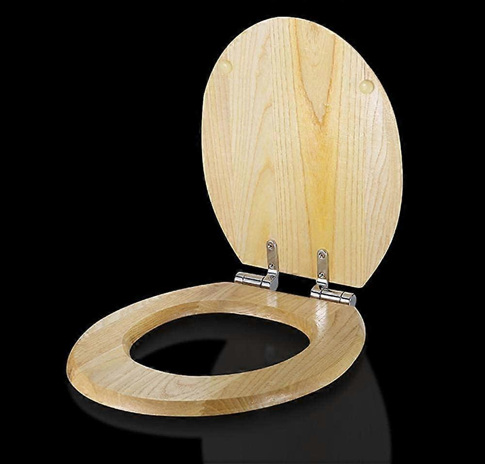 Wooden Toilet Seat Slow Close Lid, Easy Mount, Bottom Fixing, Big U Type, Family Bathroom