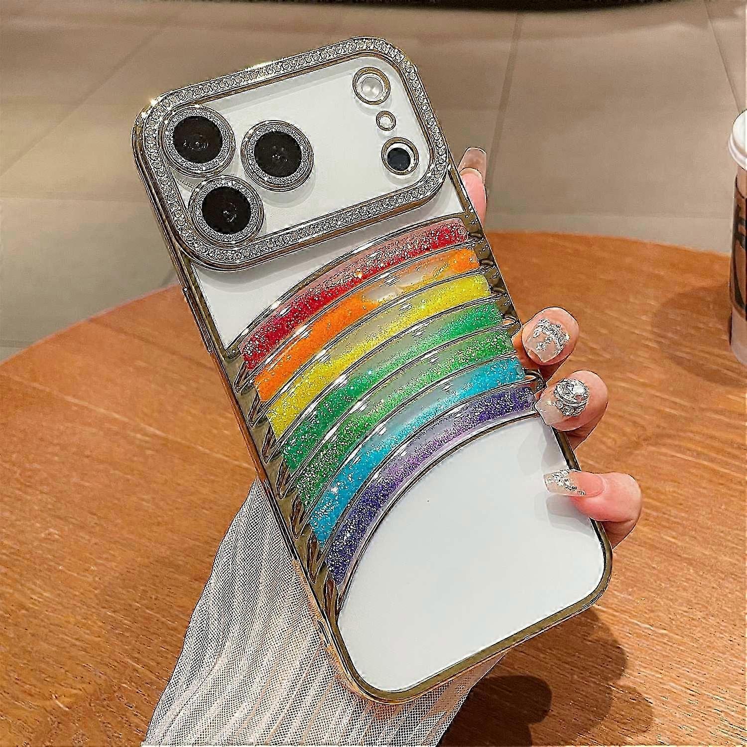 17 Pro Case with Rhinestone Decor, Rainbow Quicksand TPU Acrylic Phone Back Cover